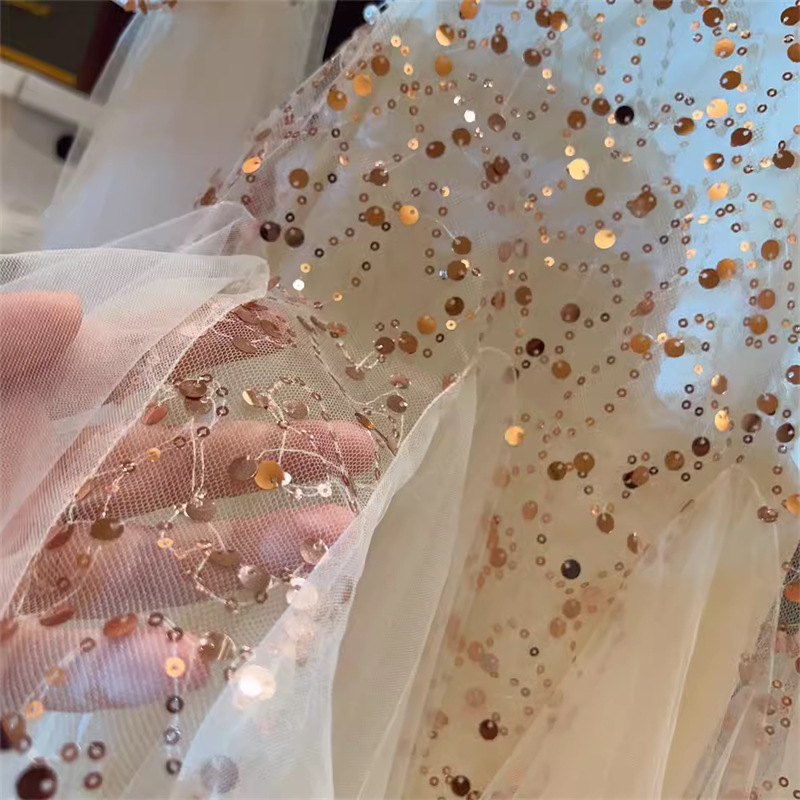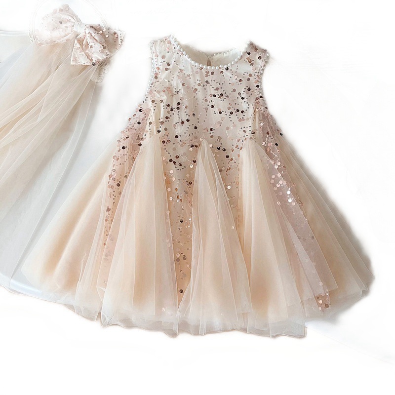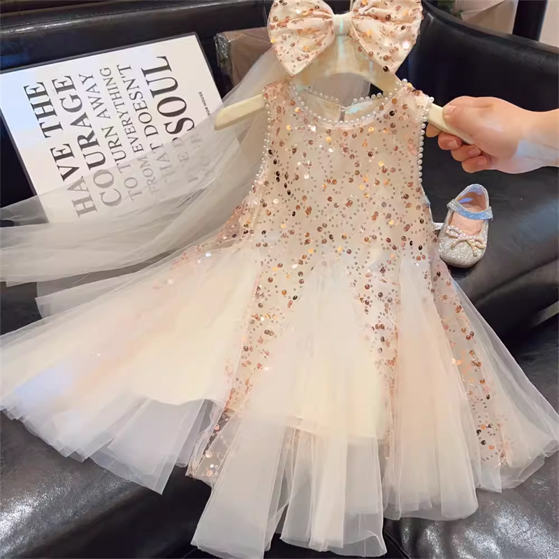 洋气2025夏季新款韩版女童珠片无袖连衣裙女孩潮流亮片网纱公主裙