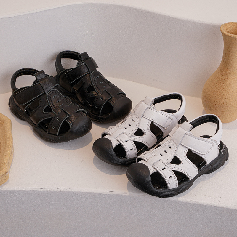 夏季新款凉鞋真皮男童包头凉拖宝宝鞋儿童鞋中大童女孩沙滩鞋