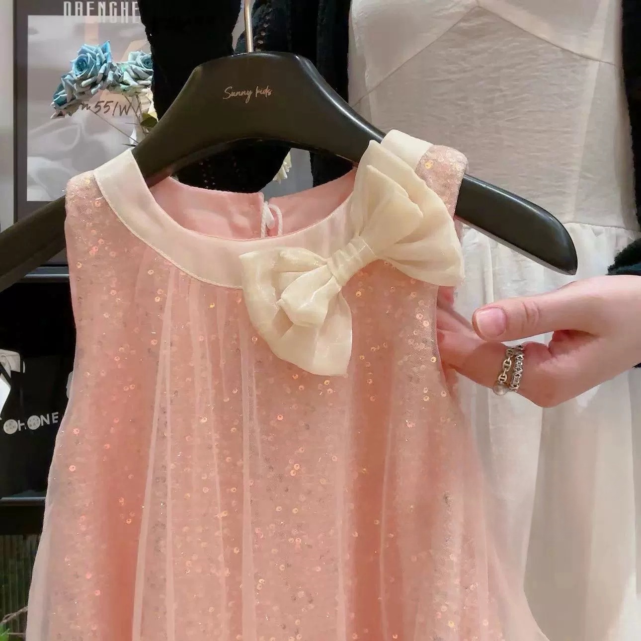 2025夏季新款女童无袖蝴蝶结网纱连衣裙女孩甜美可爱气质公主裙
