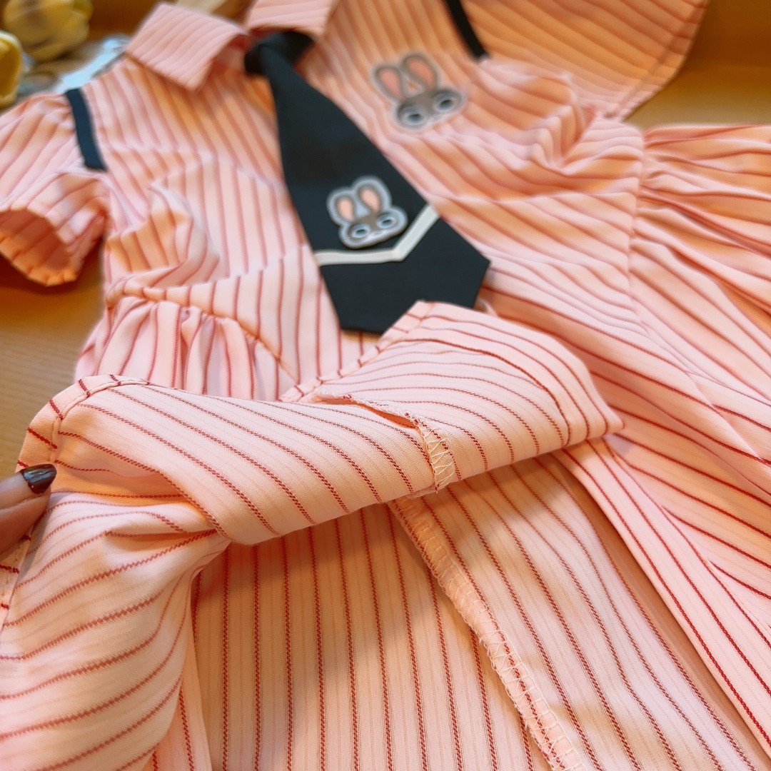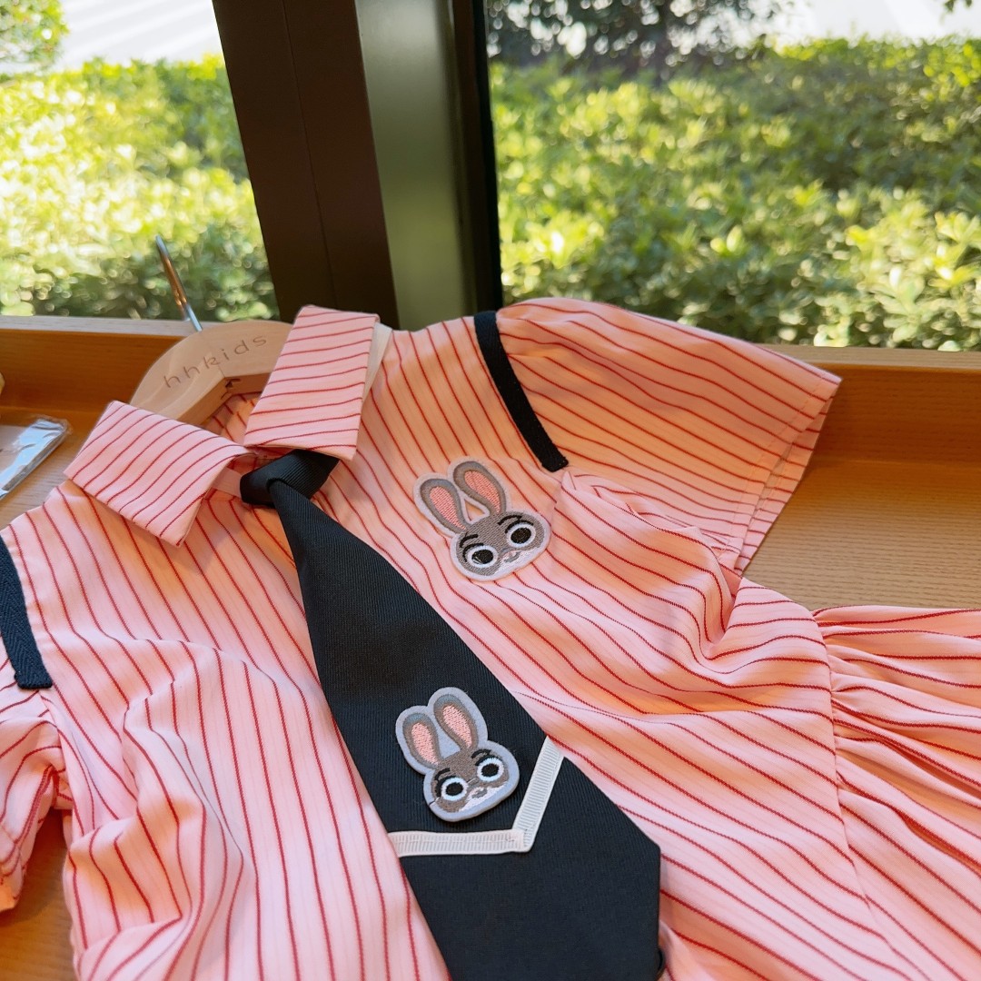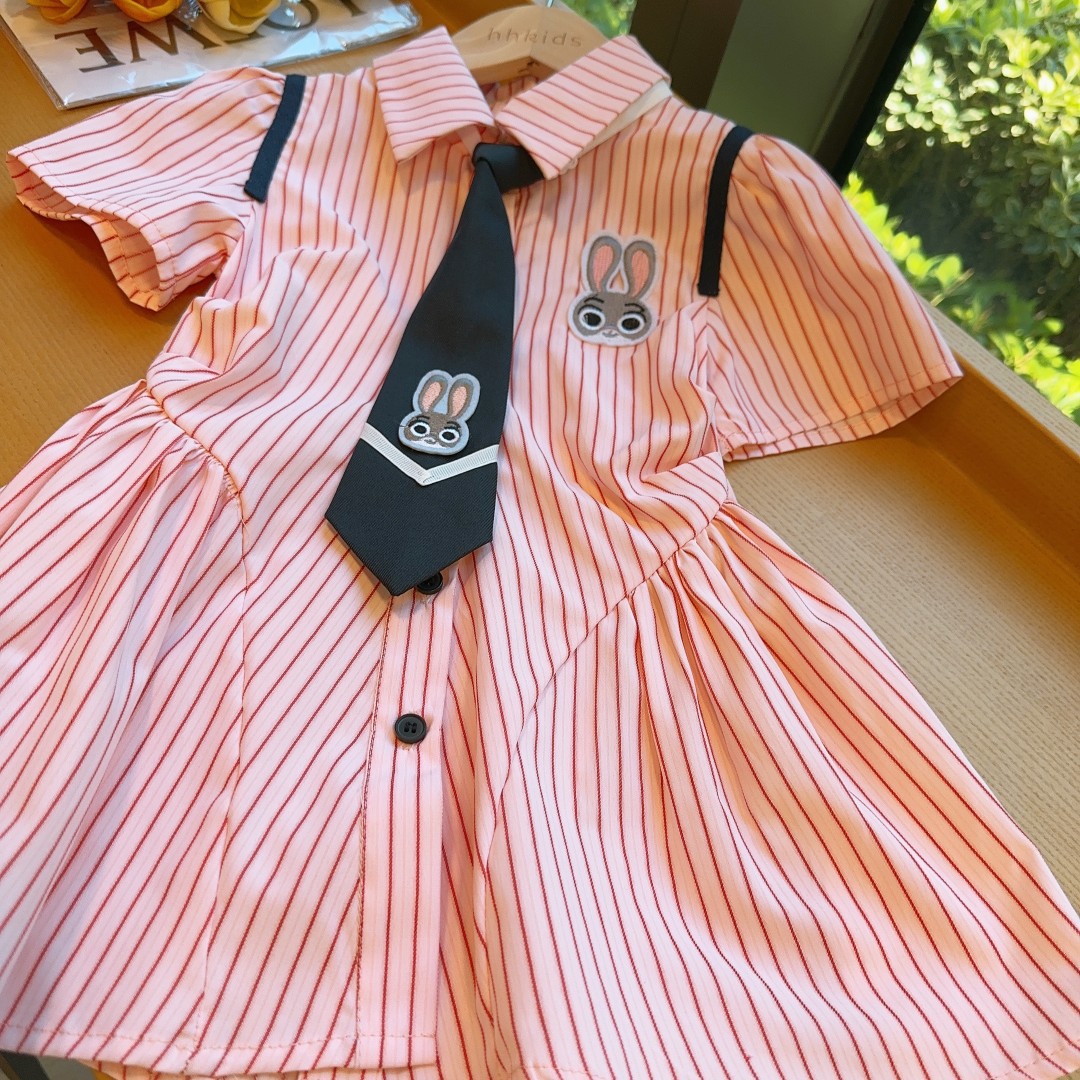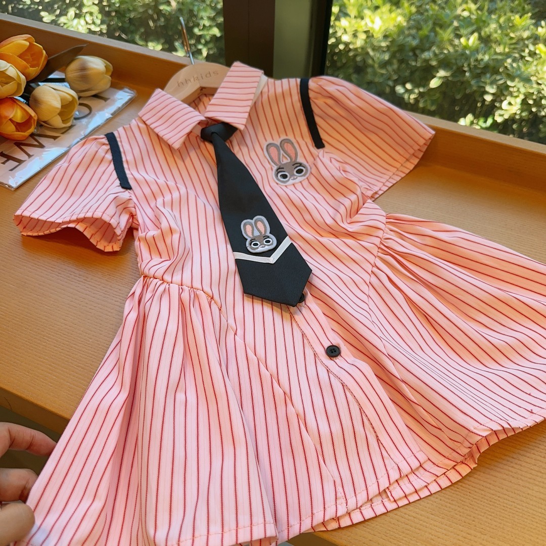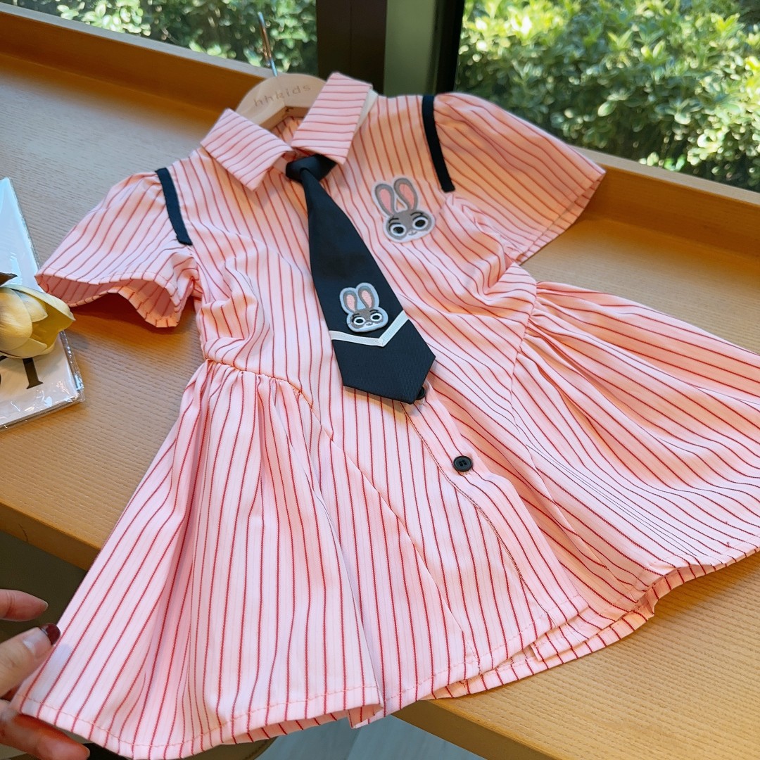 新品女童连衣裙夏装2025新款儿童学院风网红领结卡通公主裙