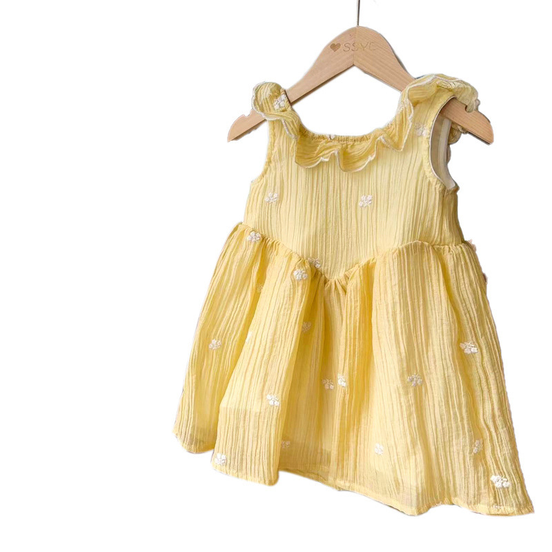 新品女童气质连衣裙夏季新款女孩子洋气花边袖刺绣网纱中小公主裙