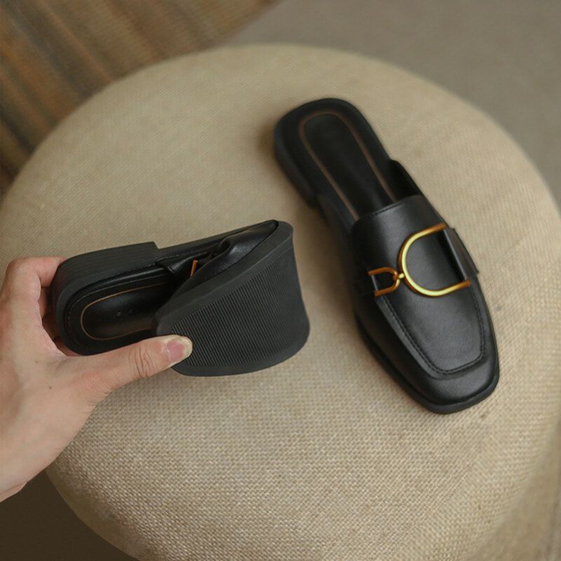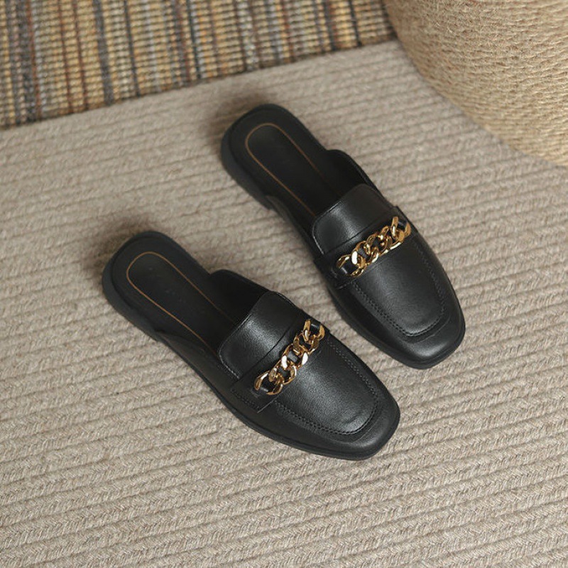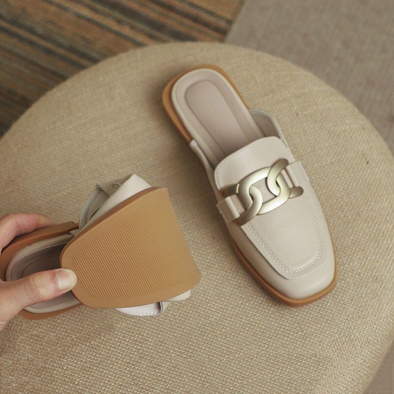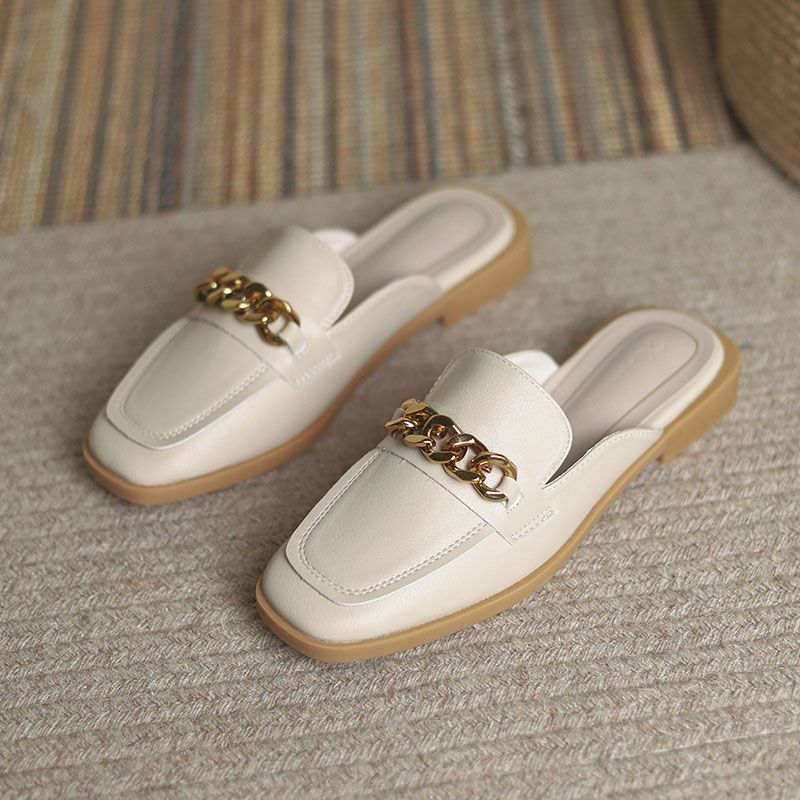 女鞋一脚蹬网红英伦风半拖 季外穿时尚舒适包头凉拖平底懒人穆勒