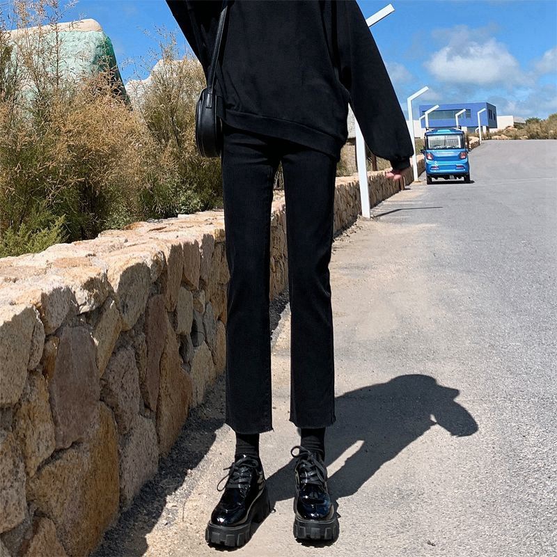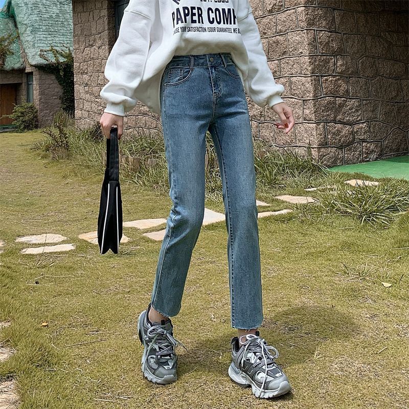 小直筒牛仔裤女新款宽松高腰显瘦弹力烟管小个子百搭九分裤