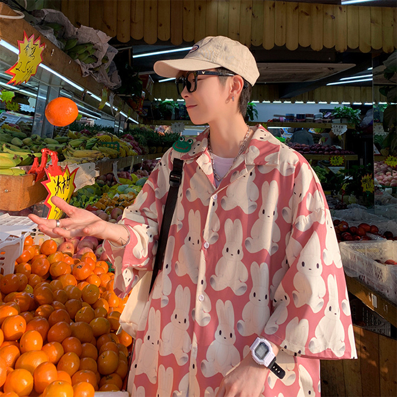 满印花衬衫男生设计感小众短袖衬衣港风日系夏季薄款痞帅外套上衣