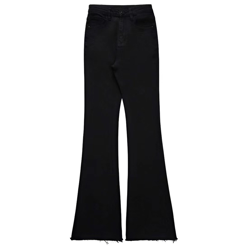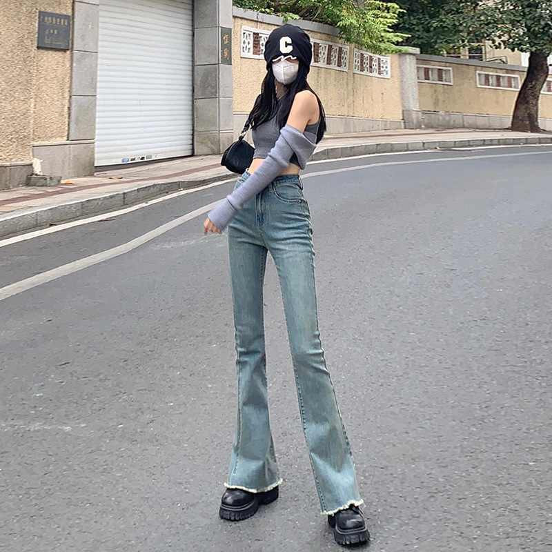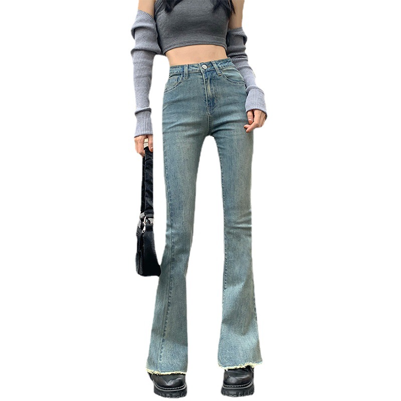 弹力修身高腰显瘦微喇牛仔裤女新款春季复古百搭喇叭毛边裤