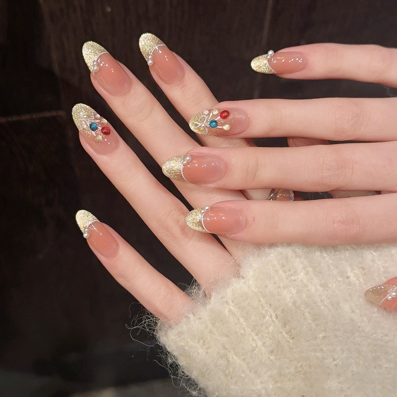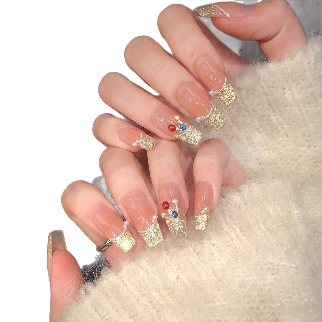 艺禾美甲 彩色气球可爱香槟猫眼珍珠显白纯欲少女心穿戴甲可拆卸