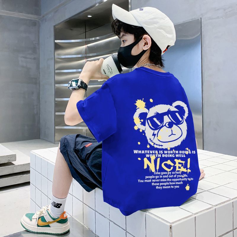 棉质童装男童短袖t恤学生夏季新款儿童印花宝宝半袖上衣中大童