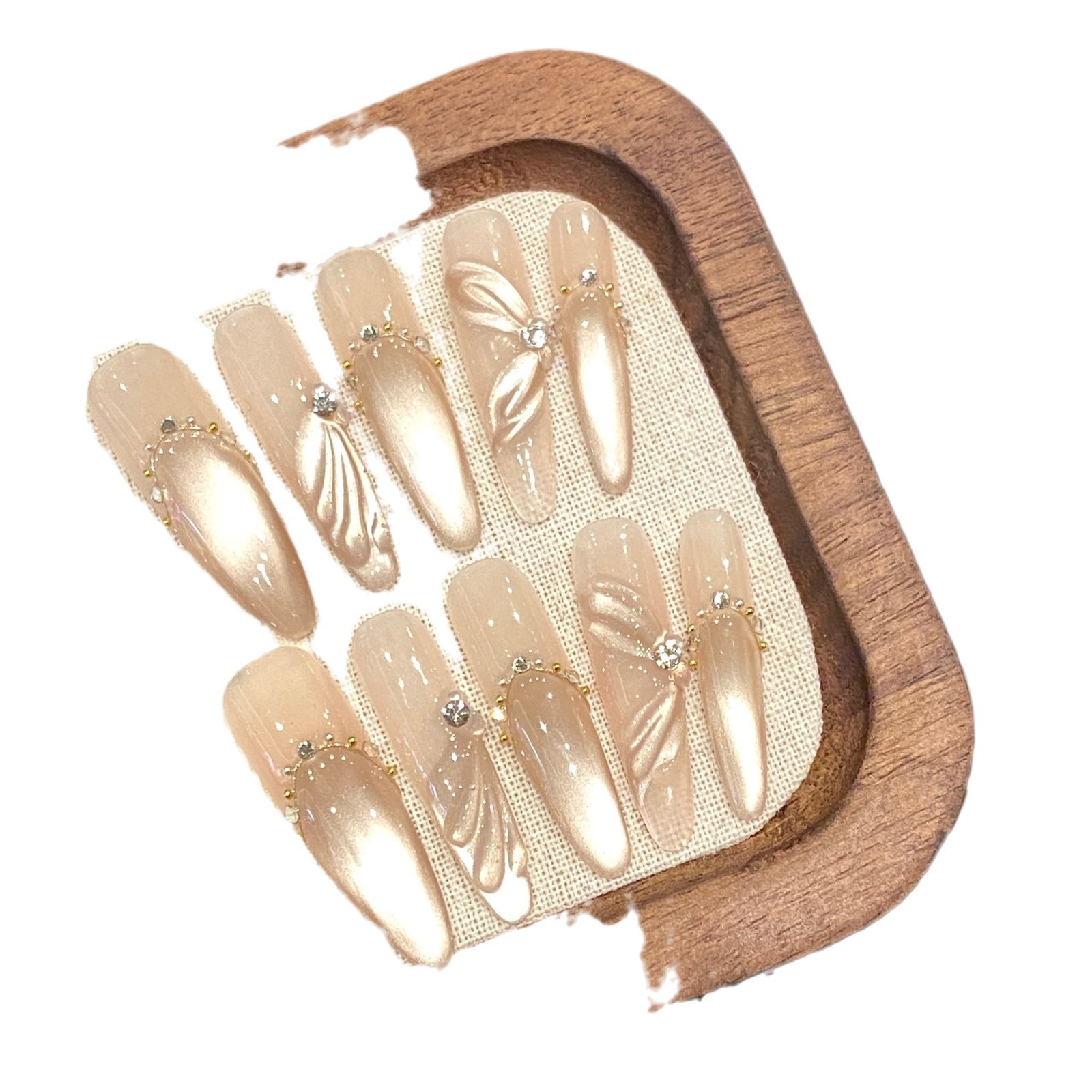 艺禾美甲 纯欲侧光猫眼立体感飘带法式折翼天使温柔显白穿戴甲