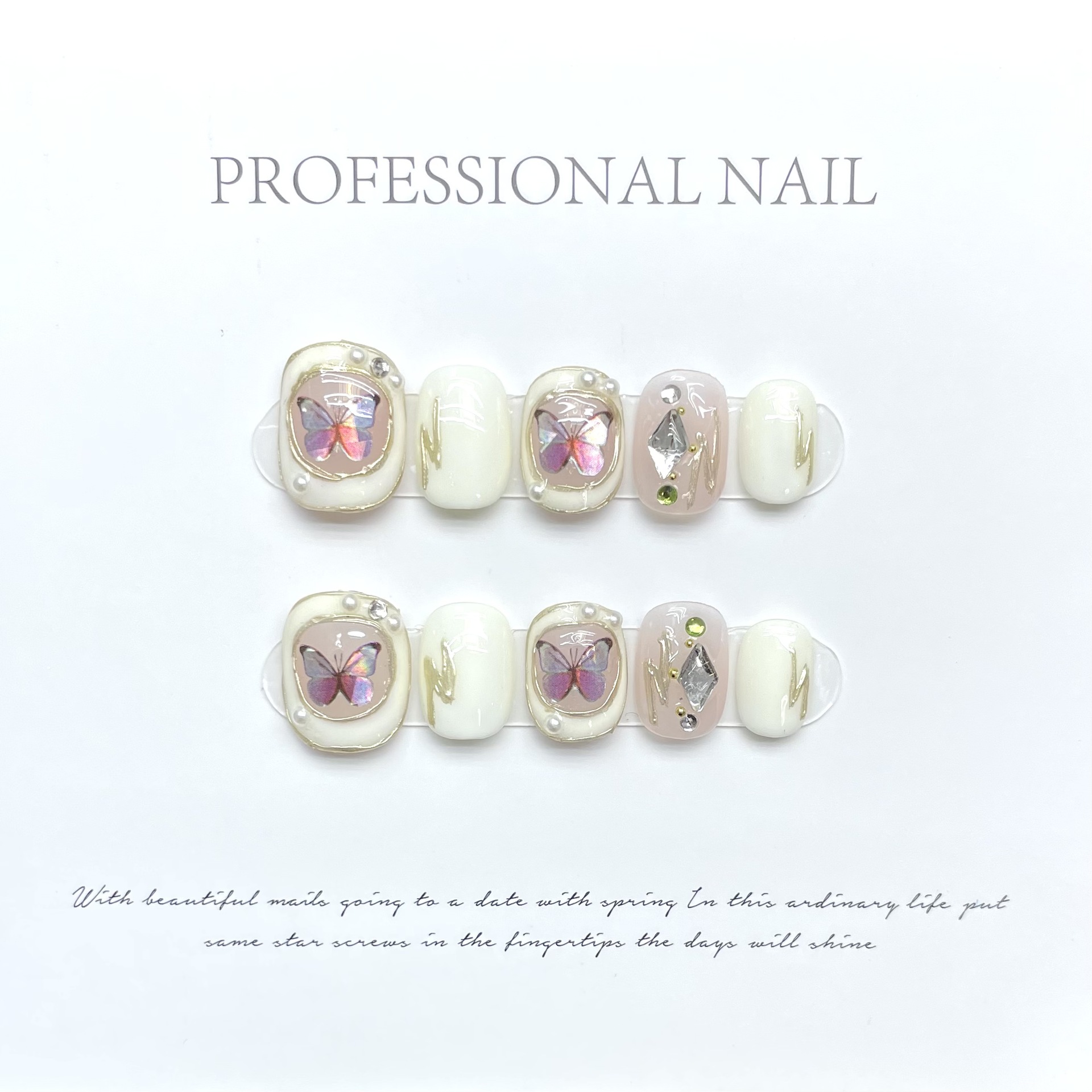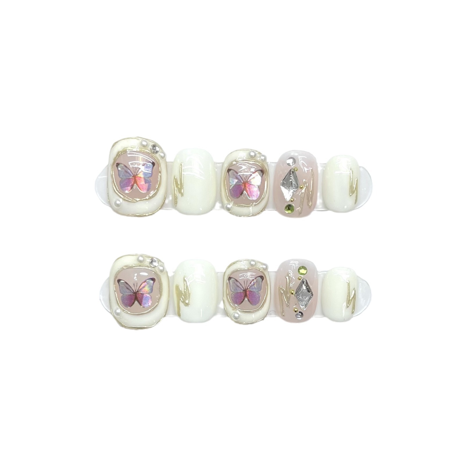 假指甲贴片成品巴洛克蝴蝶穿戴甲片珍珠镶钻美甲甲片短圆甲型