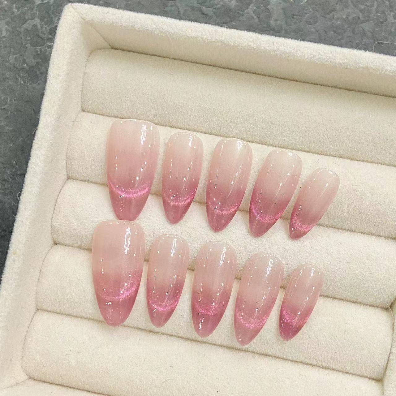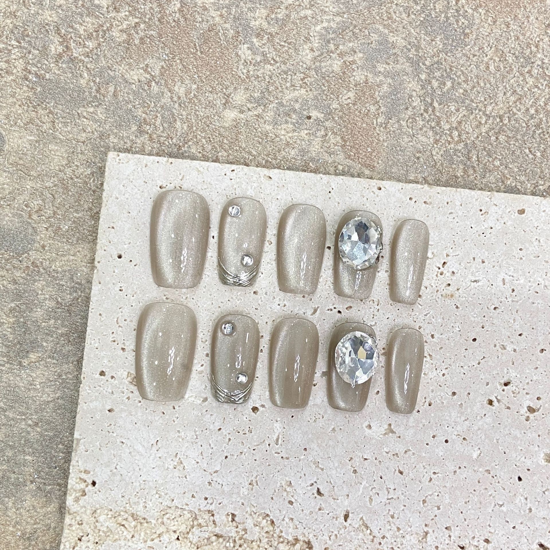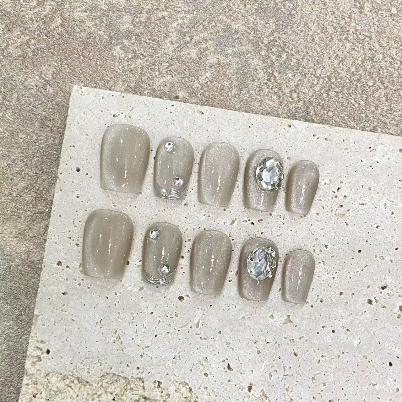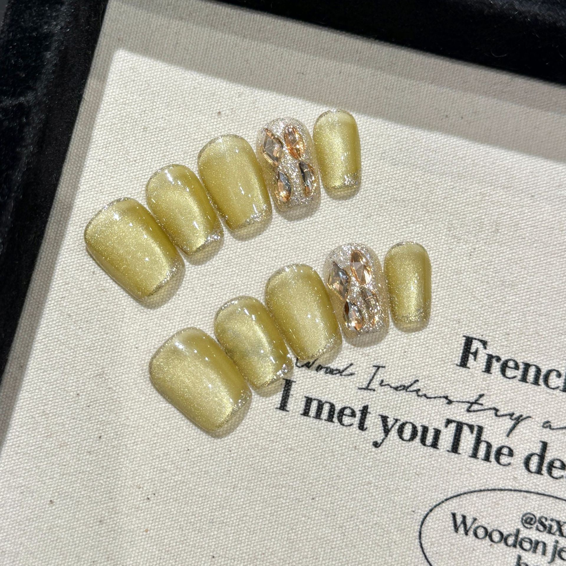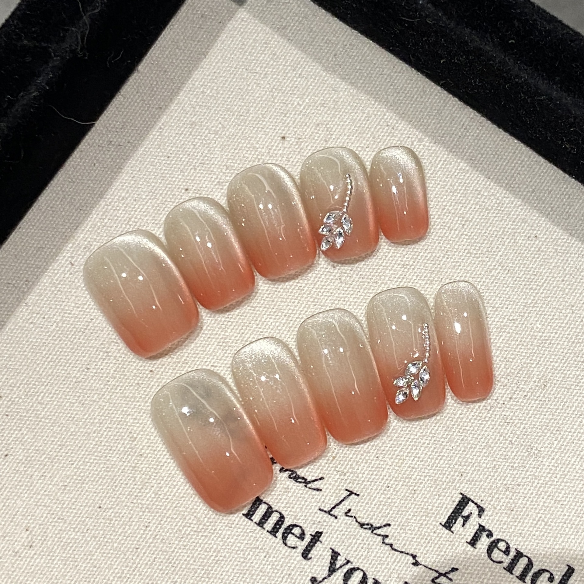 【简约系列】艺禾美甲简约猫眼裸色日常短款气质可拆卸光疗假指甲