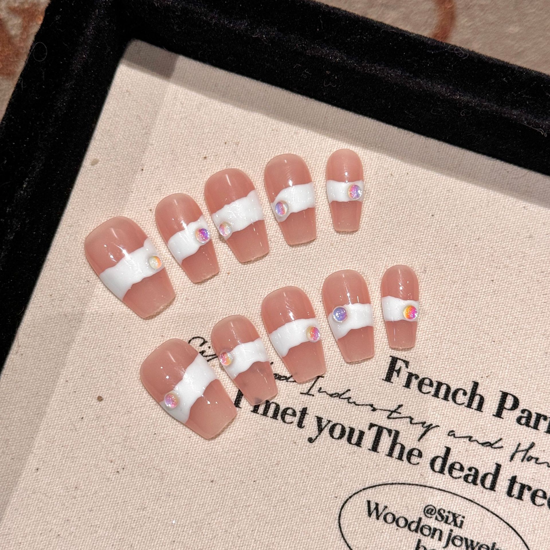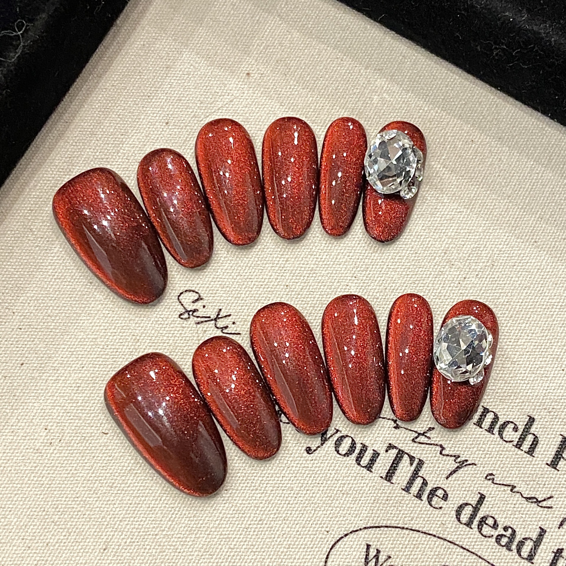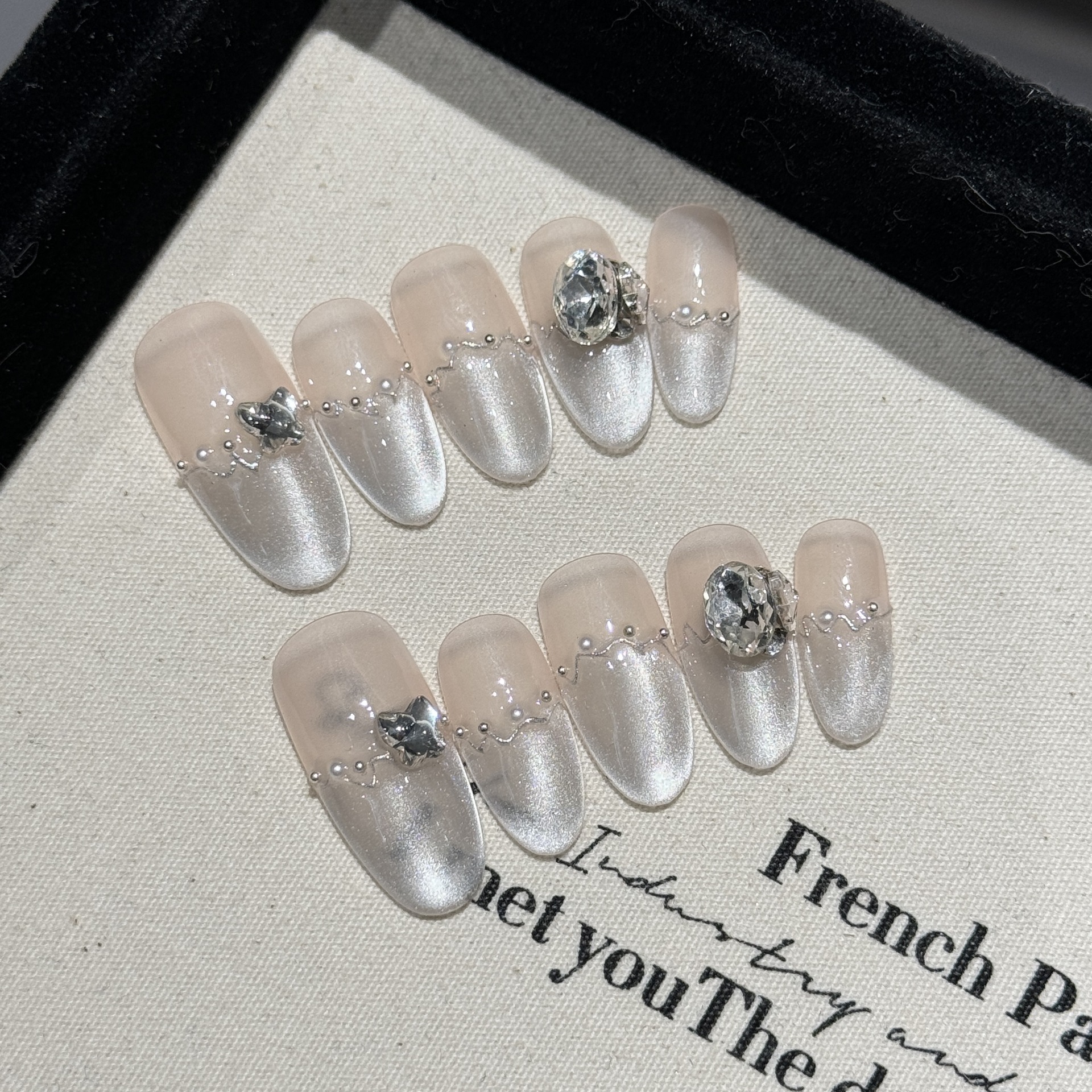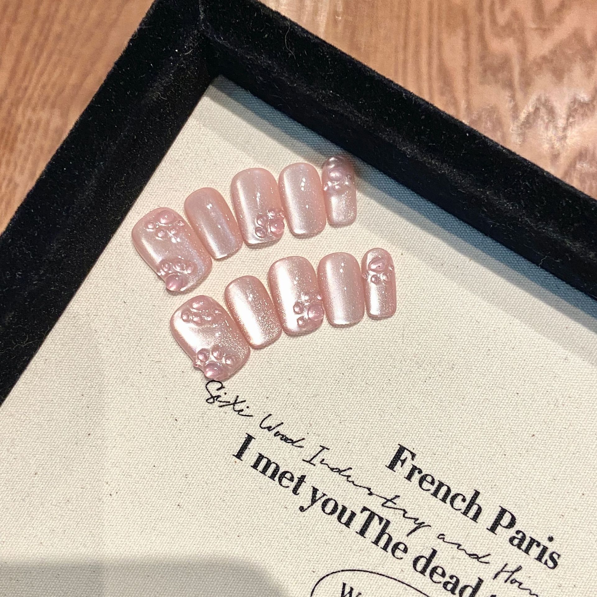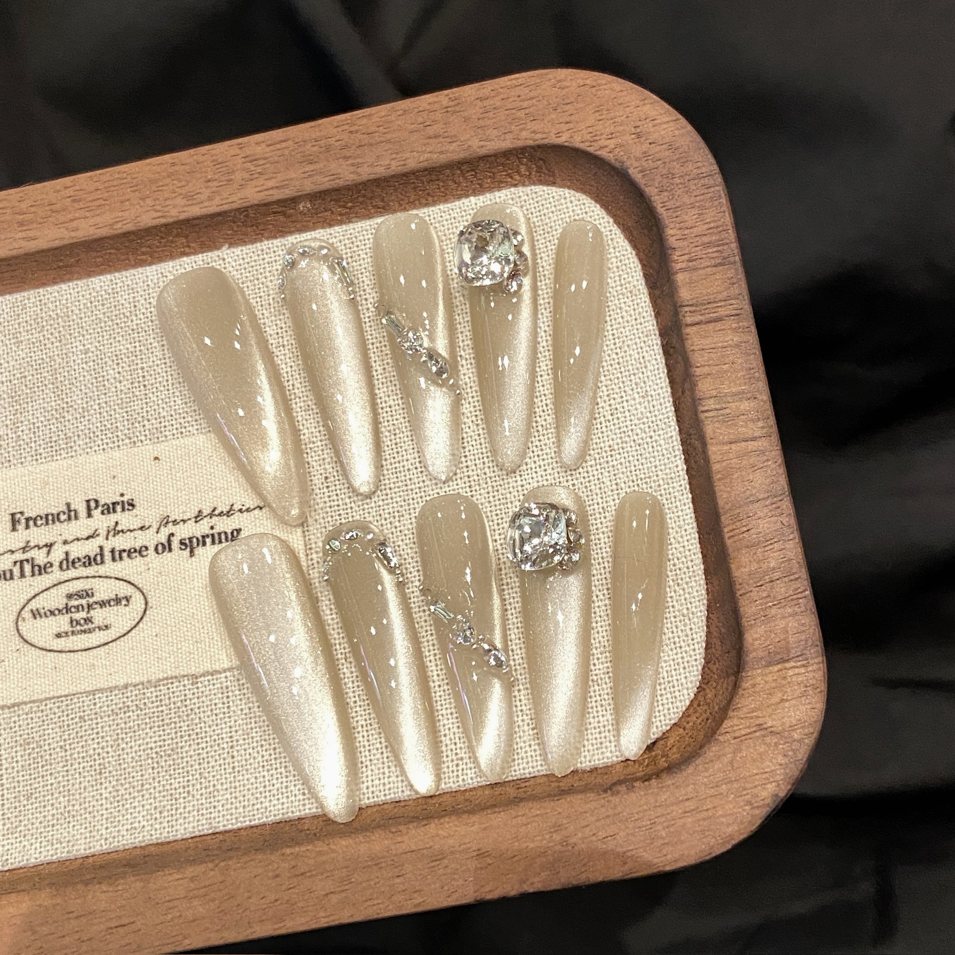 【简约系列】艺禾美甲简约猫眼裸色日常短款气质可拆卸光疗假指甲