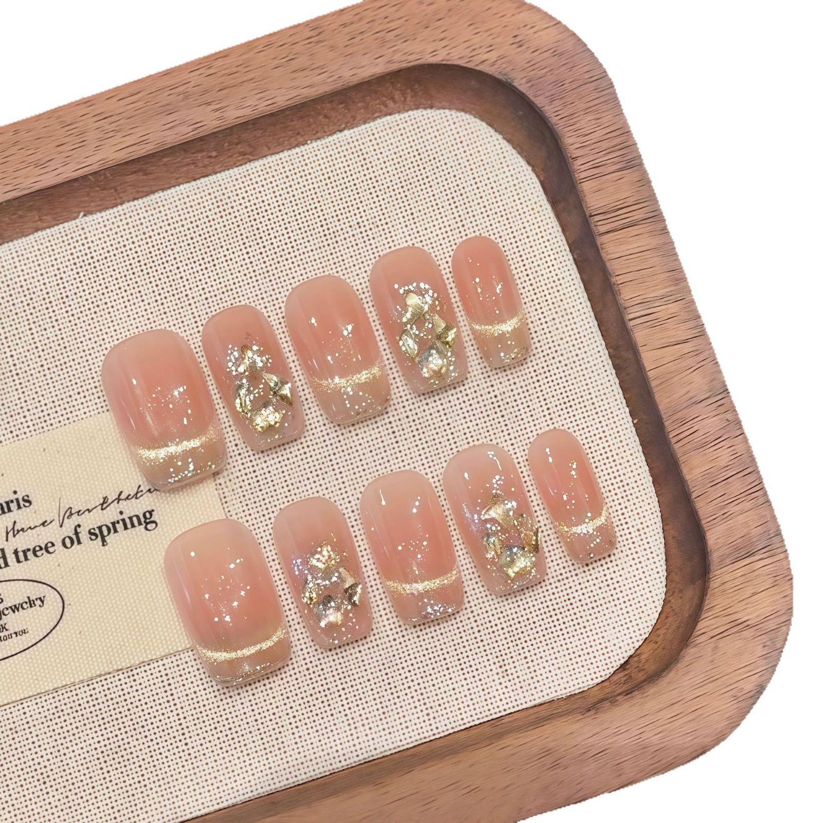 艺禾美甲 塞纳黄昏纯手工穿戴甲香槟玫瑰金猫眼气质穿戴甲爆闪