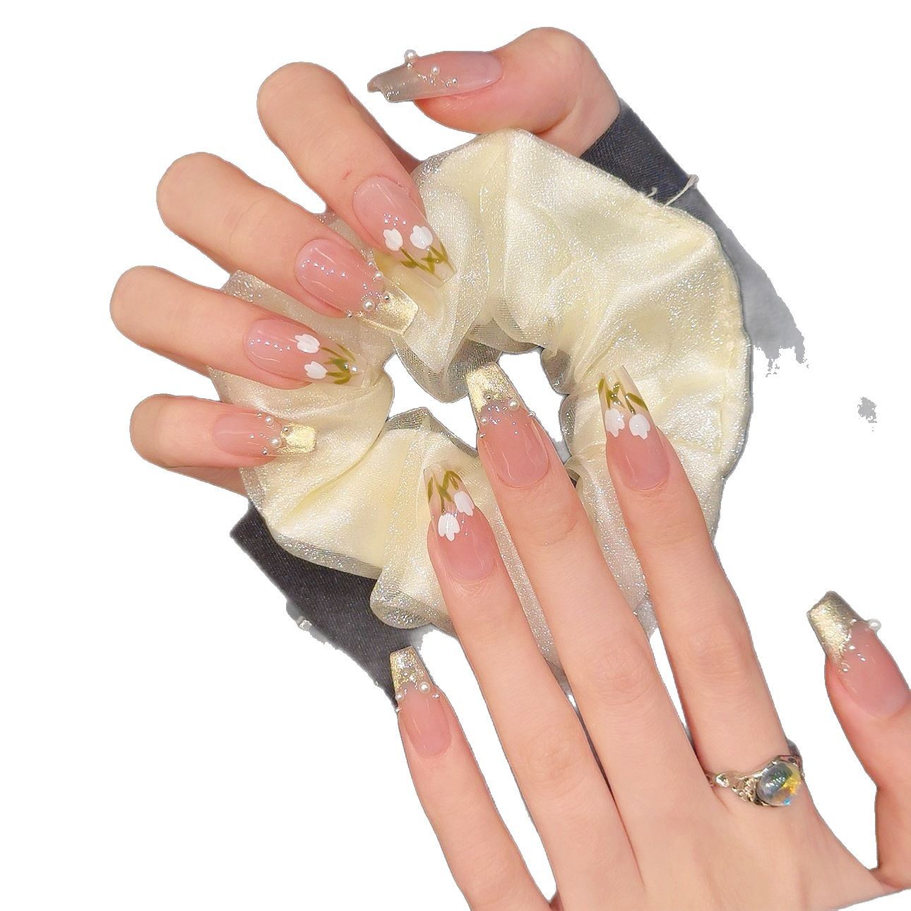 【冰晶郁金香】珍珠猫眼春季温柔款设计穿戴甲温柔气质手工美甲