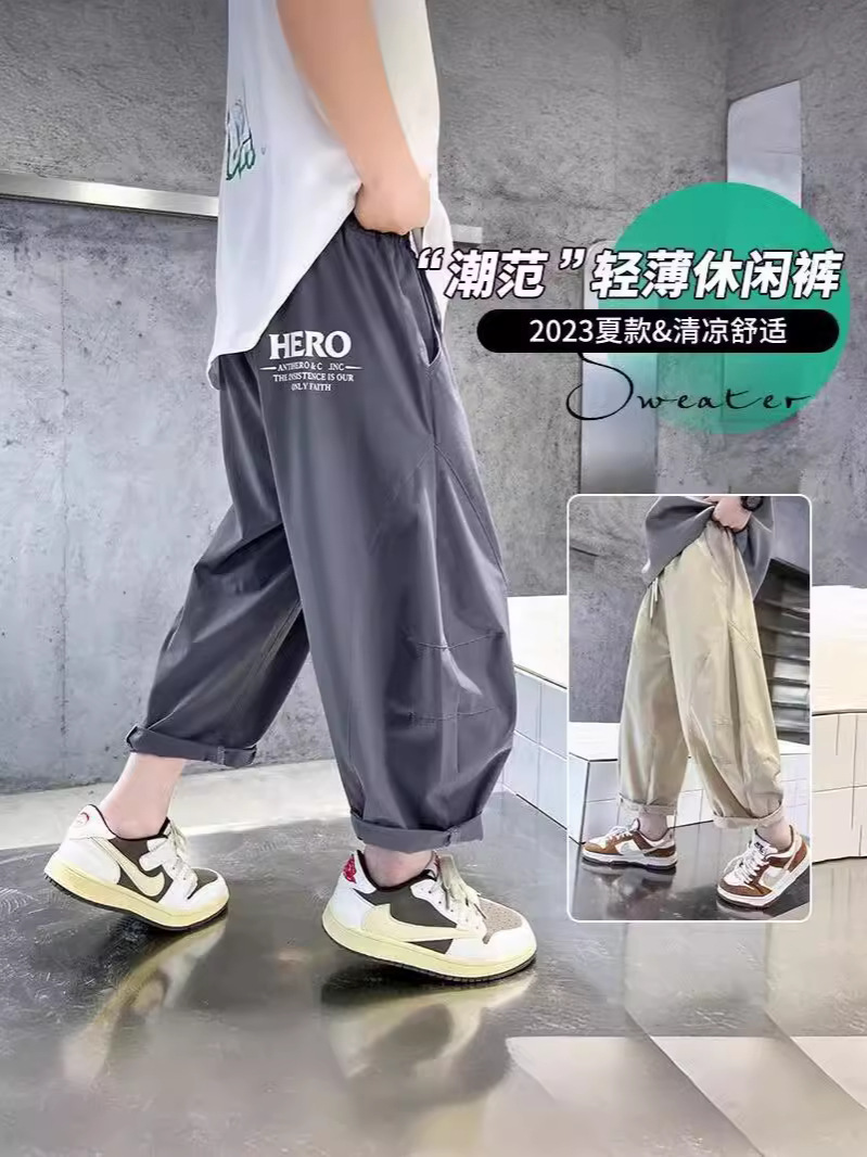 男童夏款休闲裤薄款童装洋气冰丝防蚊裤儿童潮范舒适运动卫裤