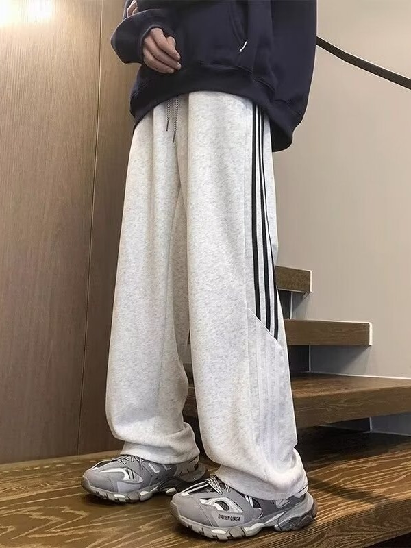 美式高街条纹大码卫裤男春秋直筒阔腿长裤宽松男生痞帅运动卫裤潮