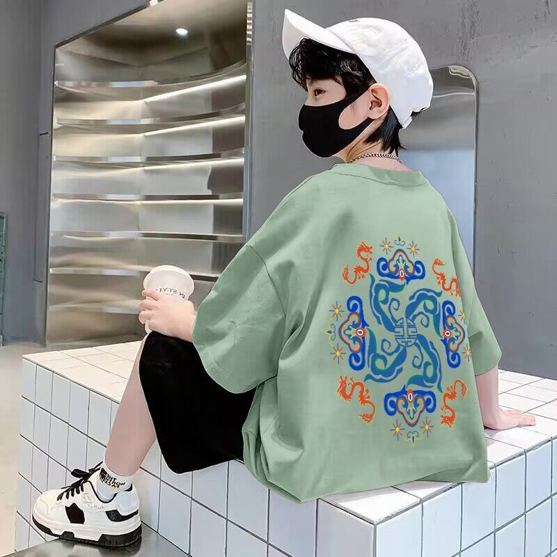 男童短袖棉质t恤夏季新款前后印花宽松帅气卡通中大童半袖儿童潮