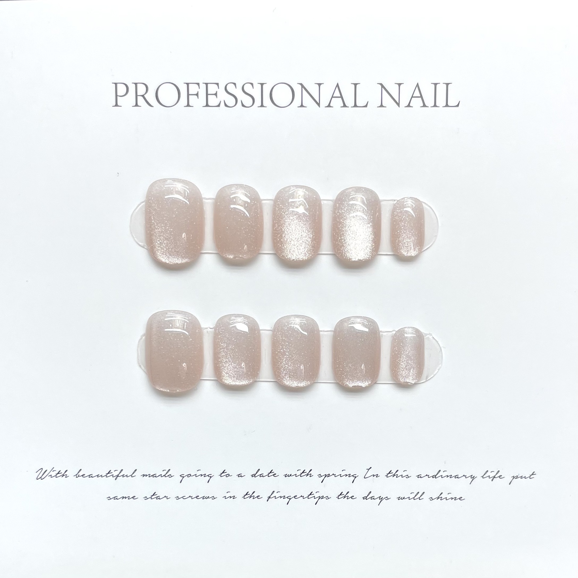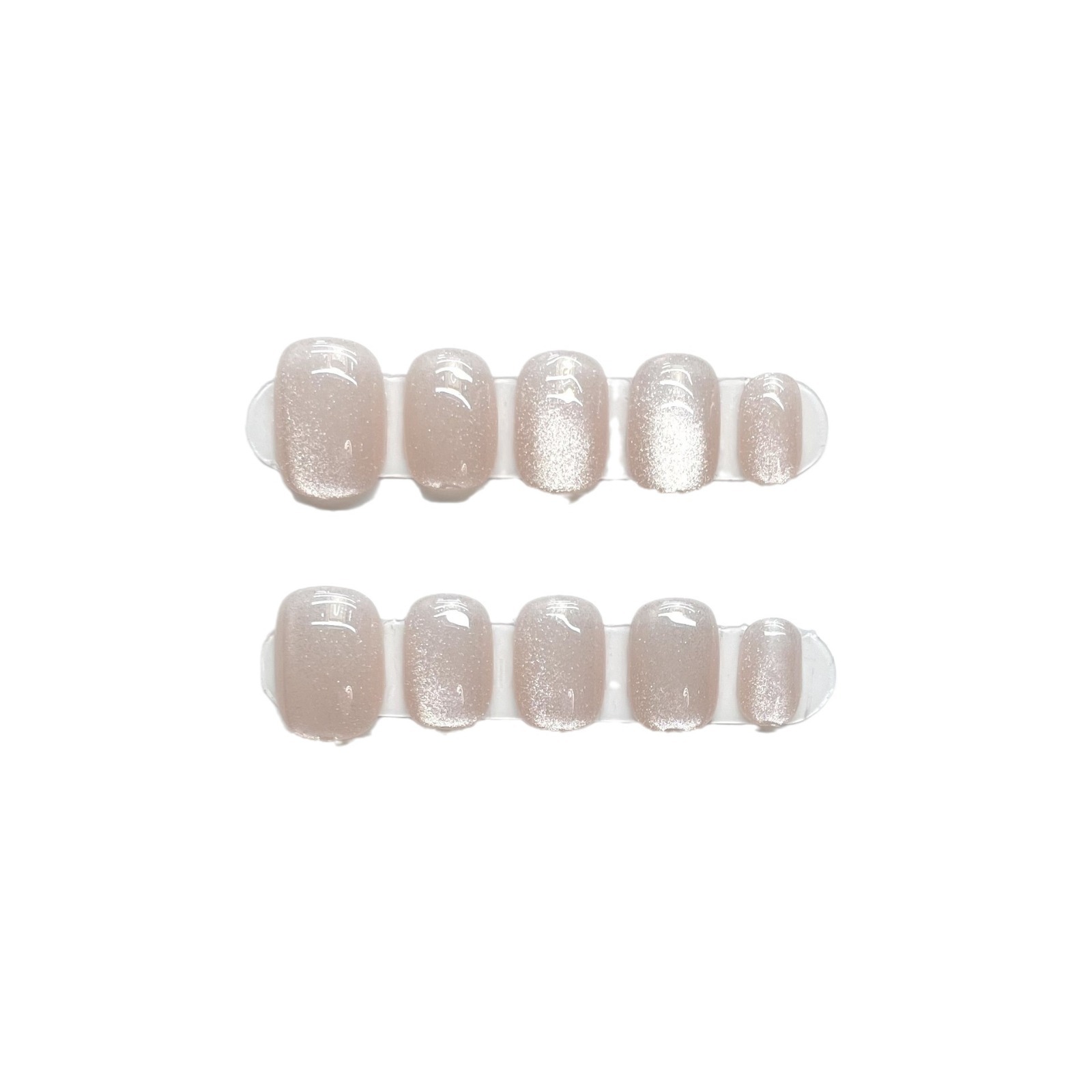 【原创实拍】冰沙猫眼穿戴甲晶石爆闪粉色高级感短款手工成品