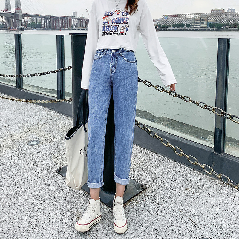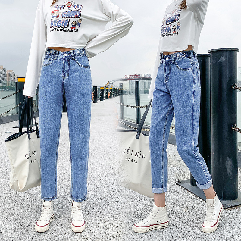 高腰牛仔裤女哈伦裤夏季年韩版新款宽松显瘦九分直筒老爹裤潮