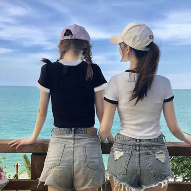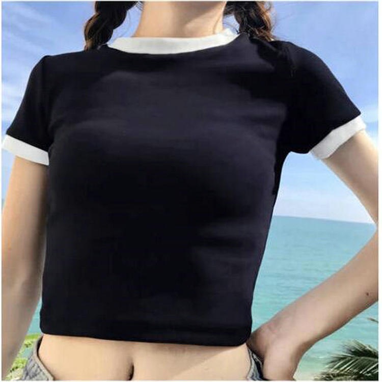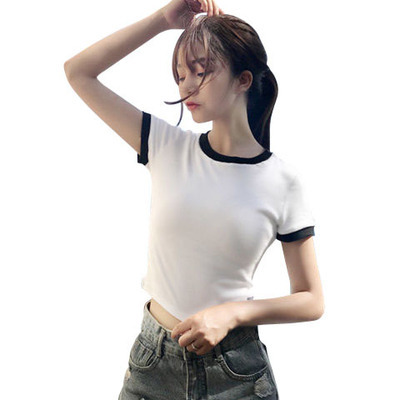 短袖T恤女夏季新款短款韩版潮学生心机紧身显瘦露脐学生上衣