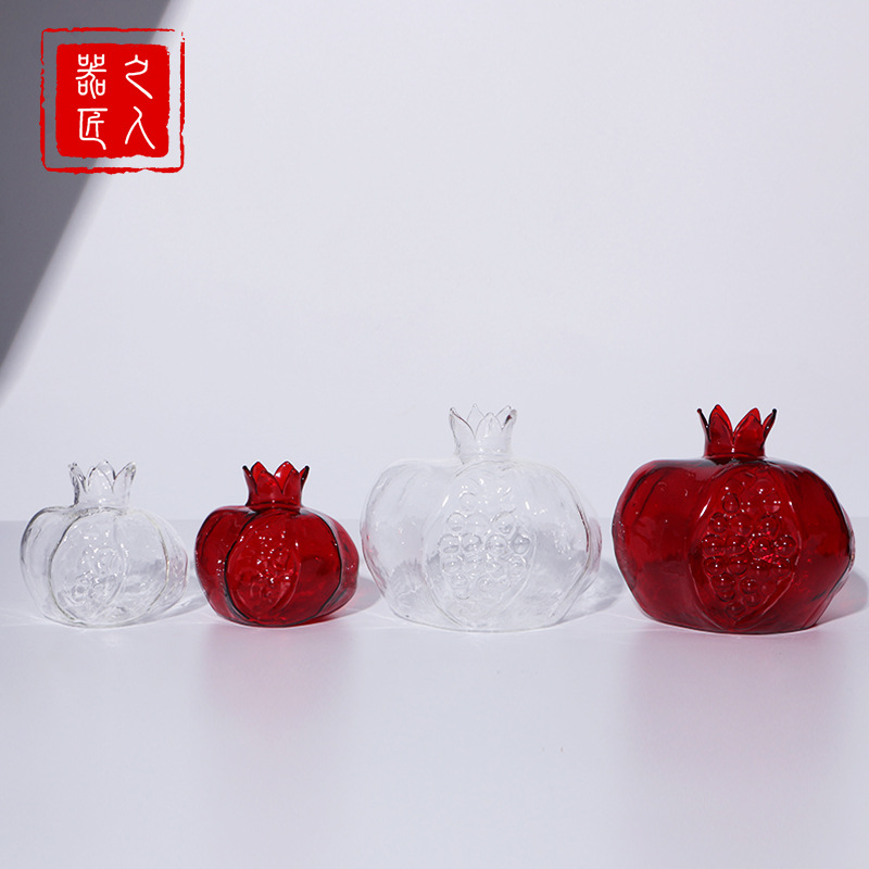 创意简约石榴花瓶 插花器透明玻璃干花花瓶 石榴玻璃花瓶