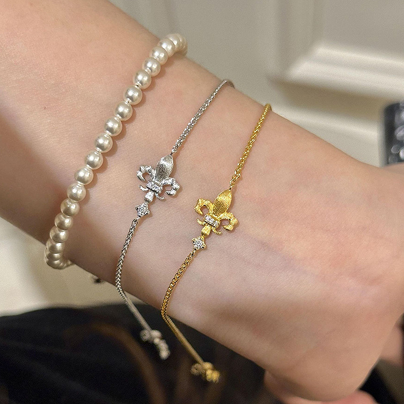 小红书同款鸢尾花拉丝手链复古宫廷风轻奢百搭时尚单品花朵手饰品