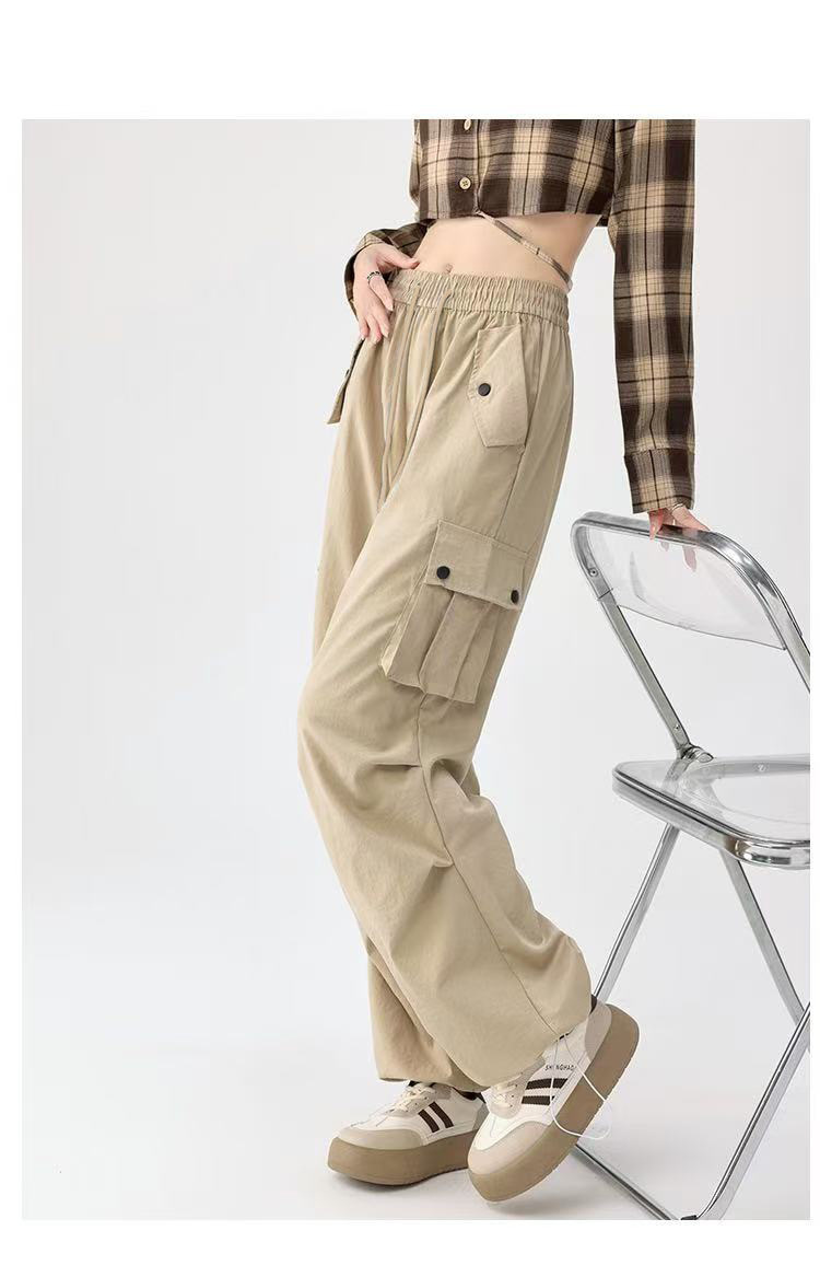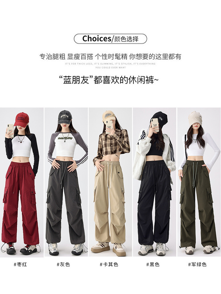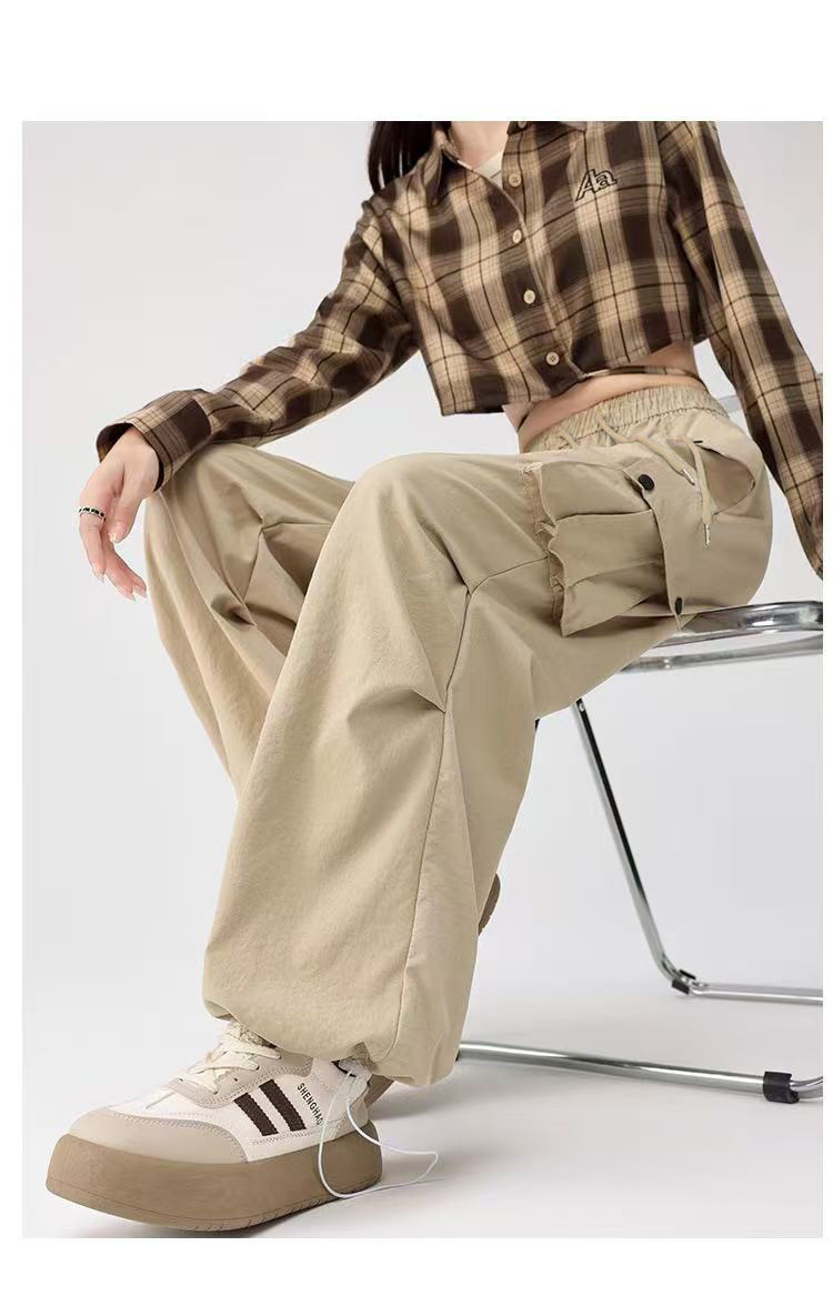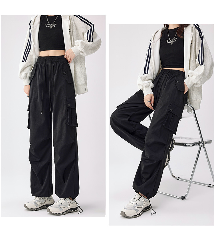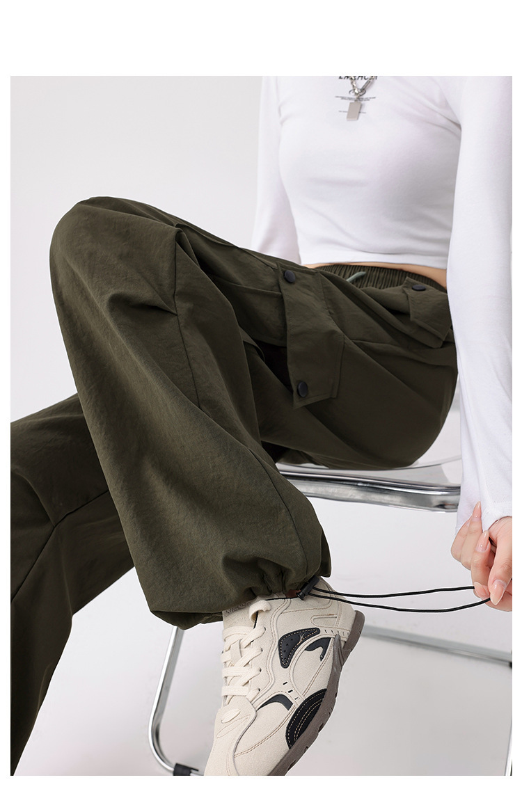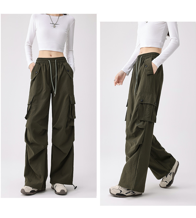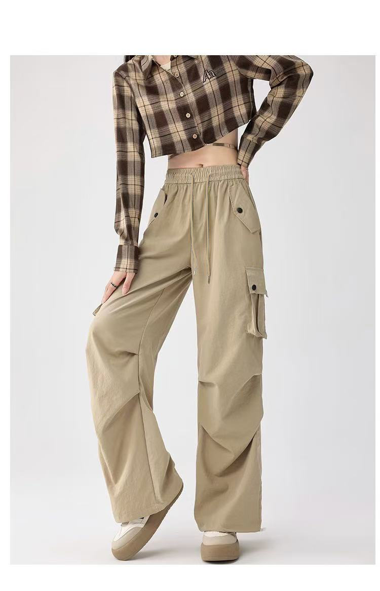 美式工装裤女夏季2025新款高腰速干降落伞裤子休闲阔腿运动长裤潮