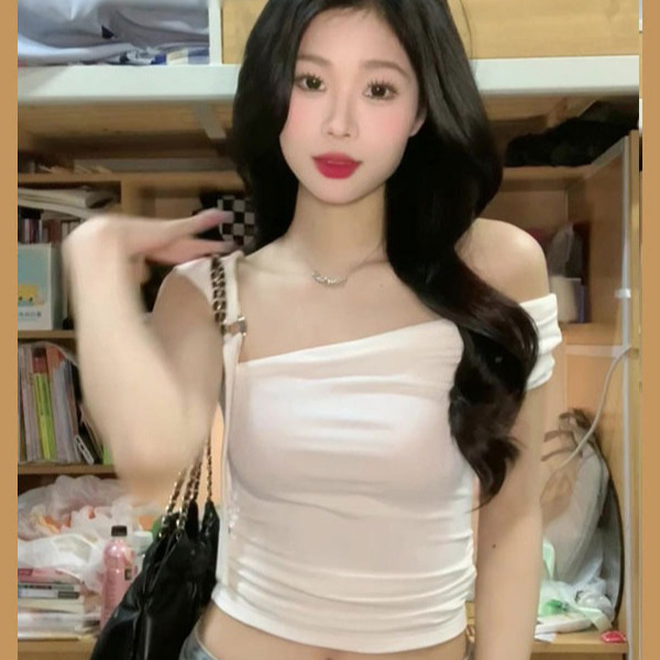 性感辣妹白色t恤女装夏季设计感小众纯欲风紧身短款漏肩上衣体恤