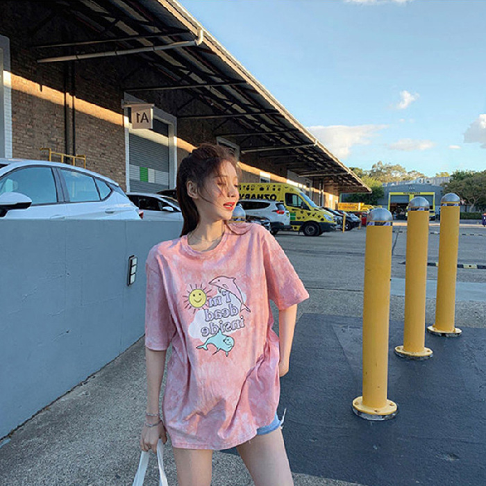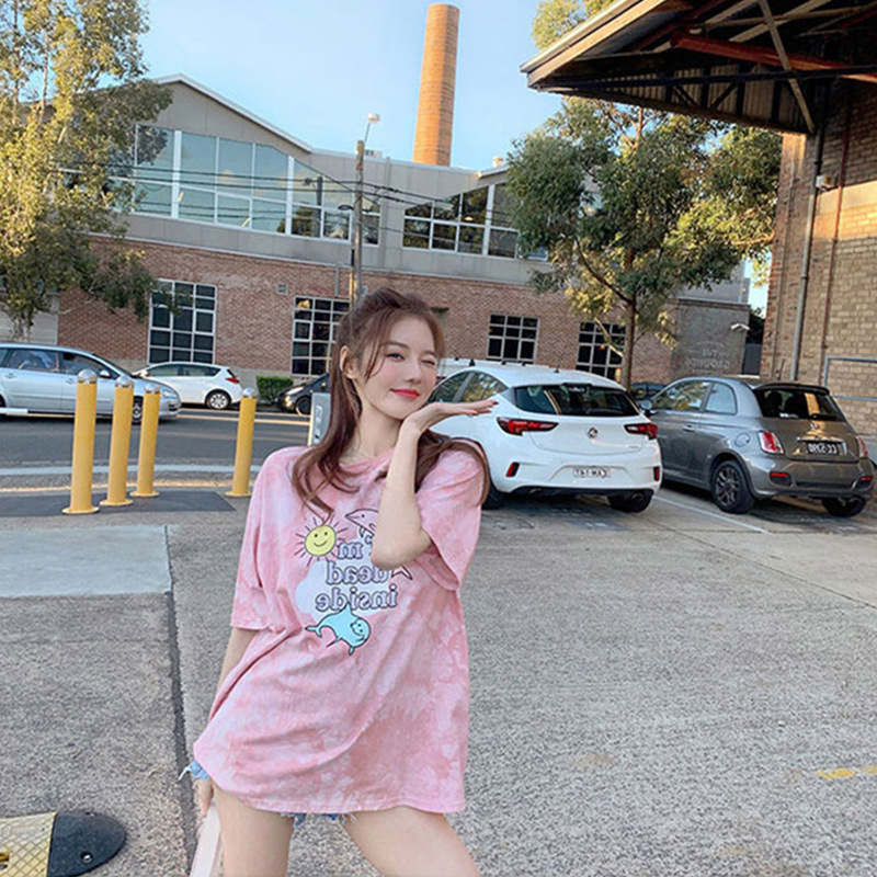 夏季新款闺蜜装卡通短袖T恤女宽松韩版学生扎染上衣服女ins潮