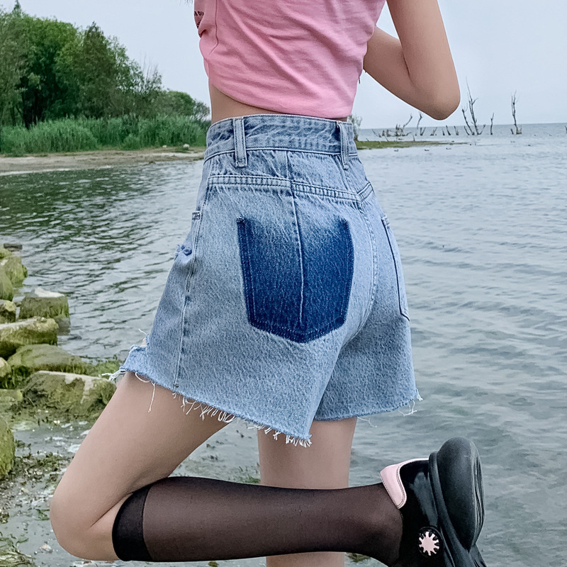 复古毛边牛仔短裤女高腰显瘦夏季新款设计感辣妹热裤a字裤