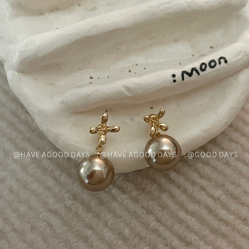 美拉德风焦糖桂花珍珠耳环小众气质高级感轻奢风简约耳饰925银针~