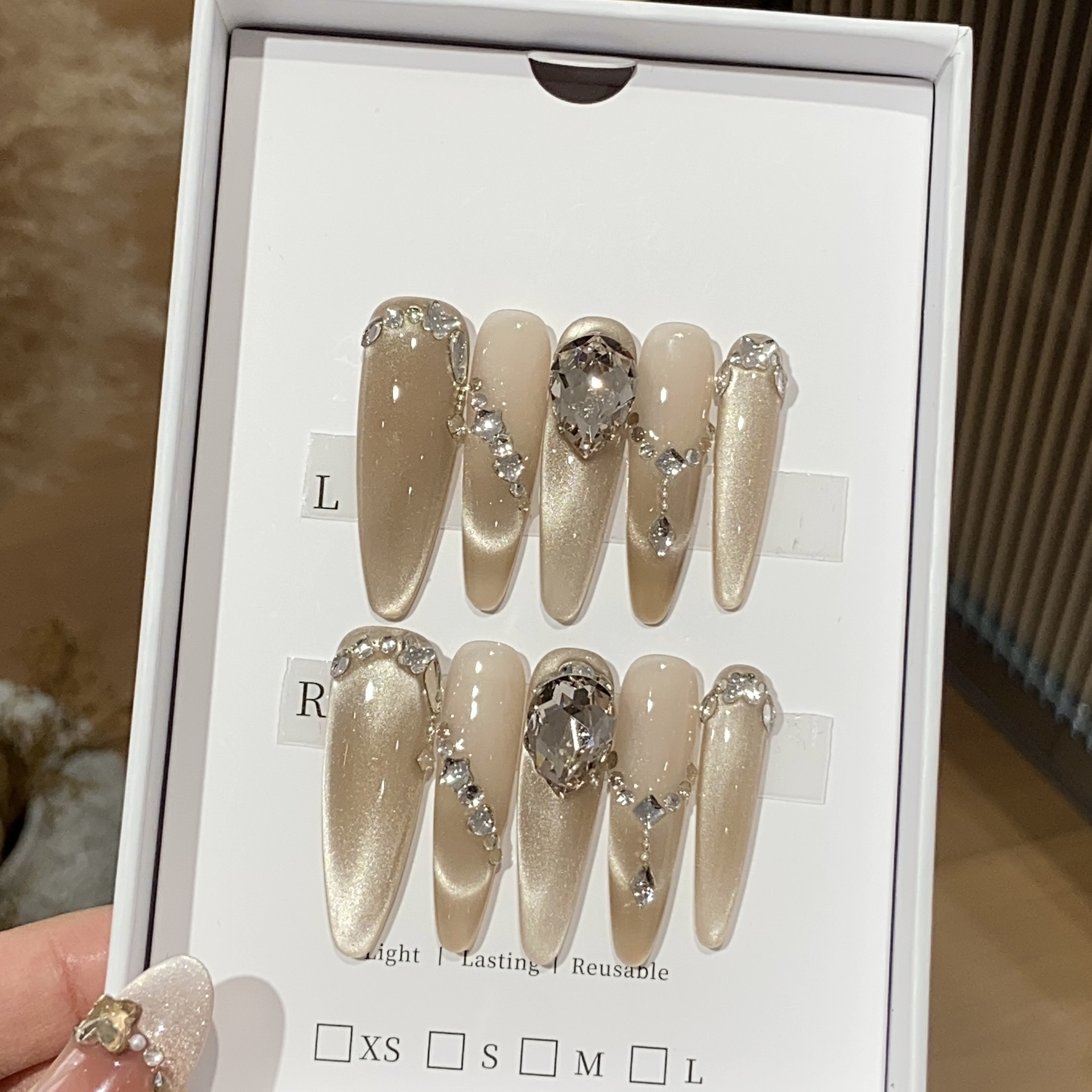 一只顾美甲 高级感香槟色渐变猫眼斜边碎钻精品香槟K9钻克罗约定