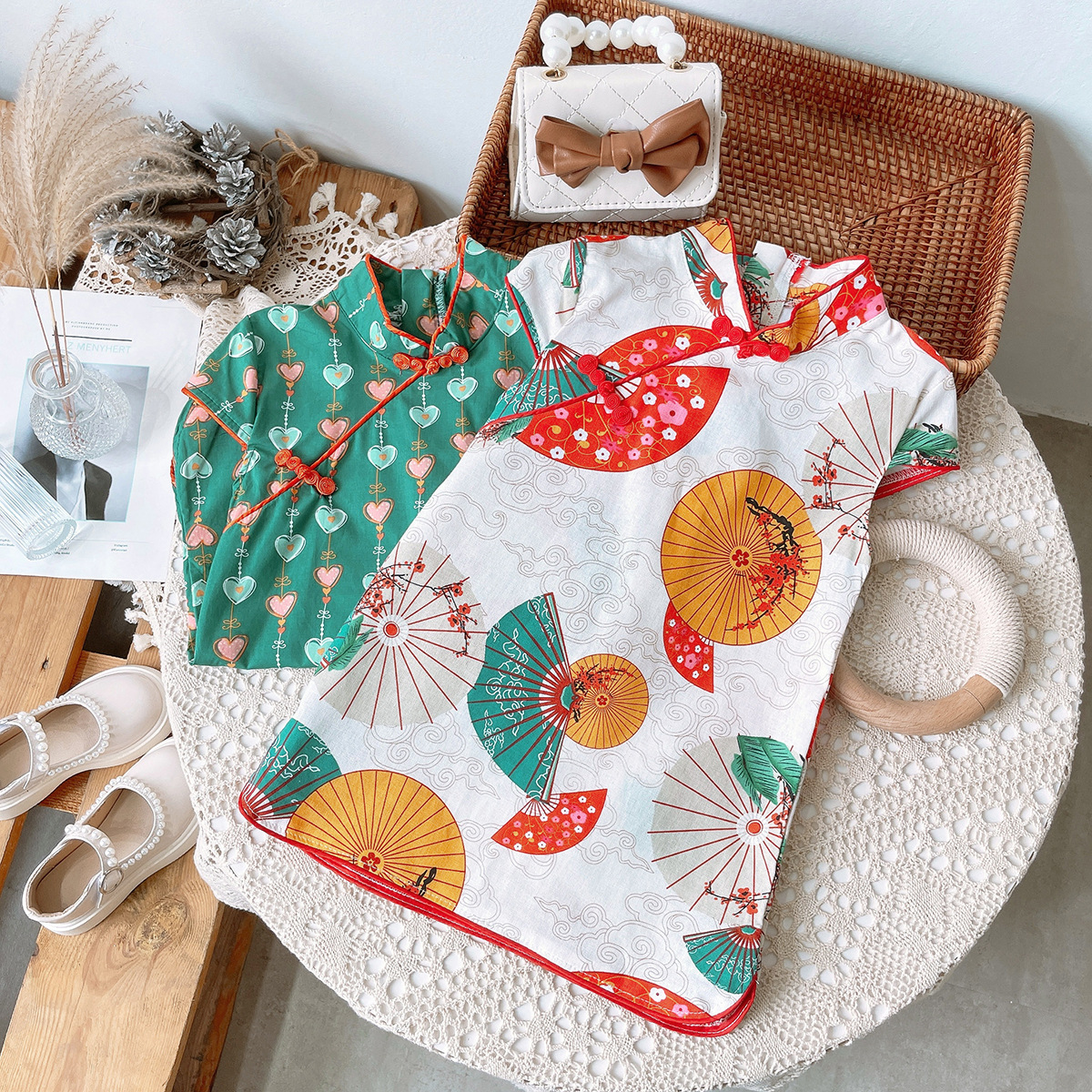 儿童旗袍夏季新款女宝宝小童中国风复古改良女童旗袍童裙9003