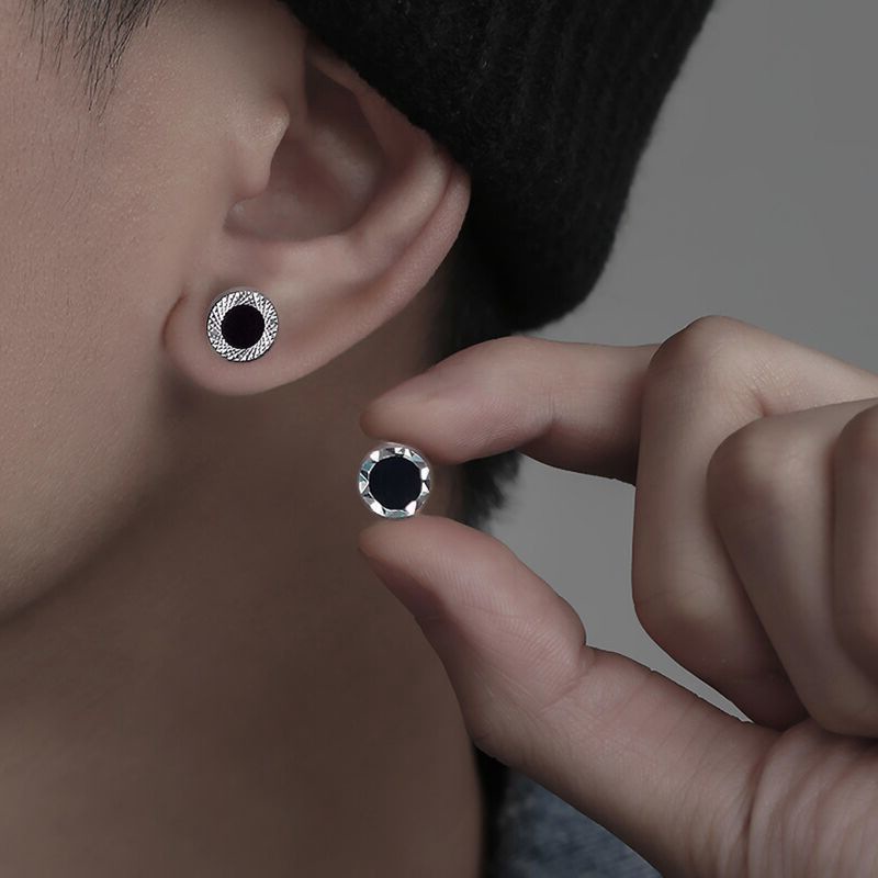 男士耳钉银精致男感冷淡风小众设计感耳环复古气质简约耳饰独立站