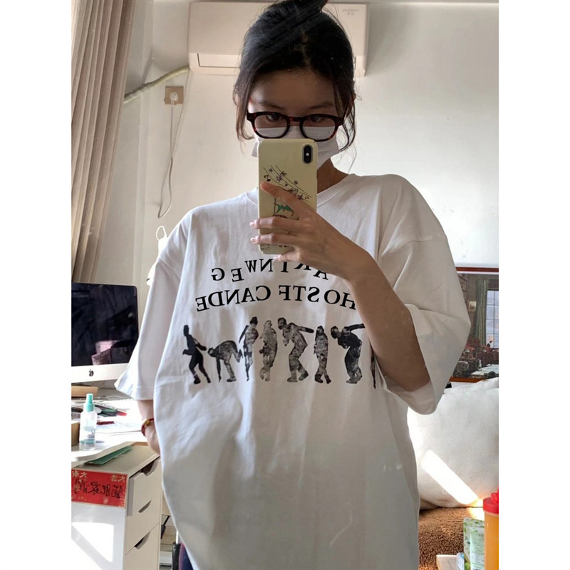 美式复古正肩重磅纯棉短袖t恤女新款宽松oversize中长款上衣