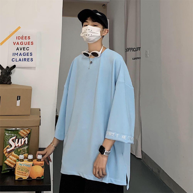 新款七分袖港风大码宽松短袖嘻哈风格T恤浅色清楚气息百搭衬衣
