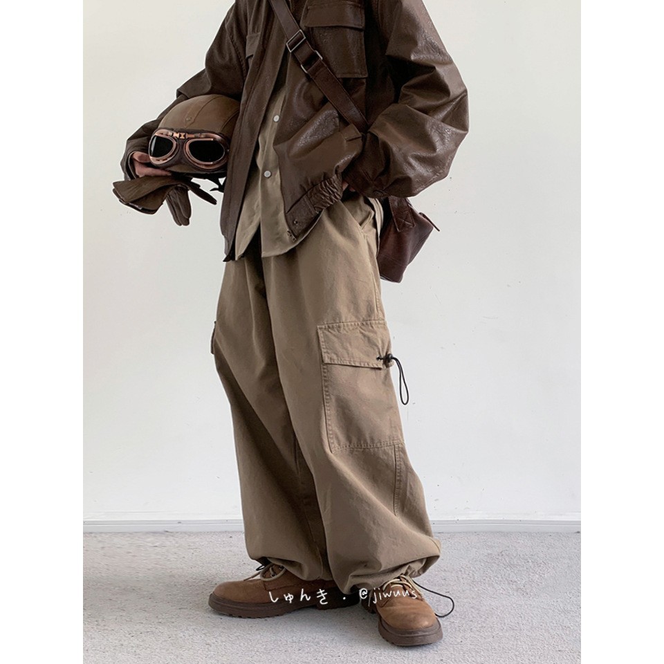 日系复古阔腿基础款工装长裤男春秋季新款宽松束脚休闲百搭长裤子