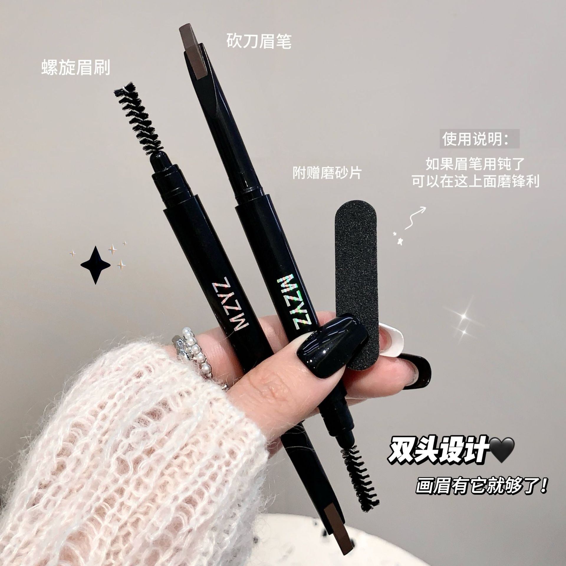 砍刀眉笔小战斧双头眉笔防水防汗持久不脱妆根根分明野生眉女