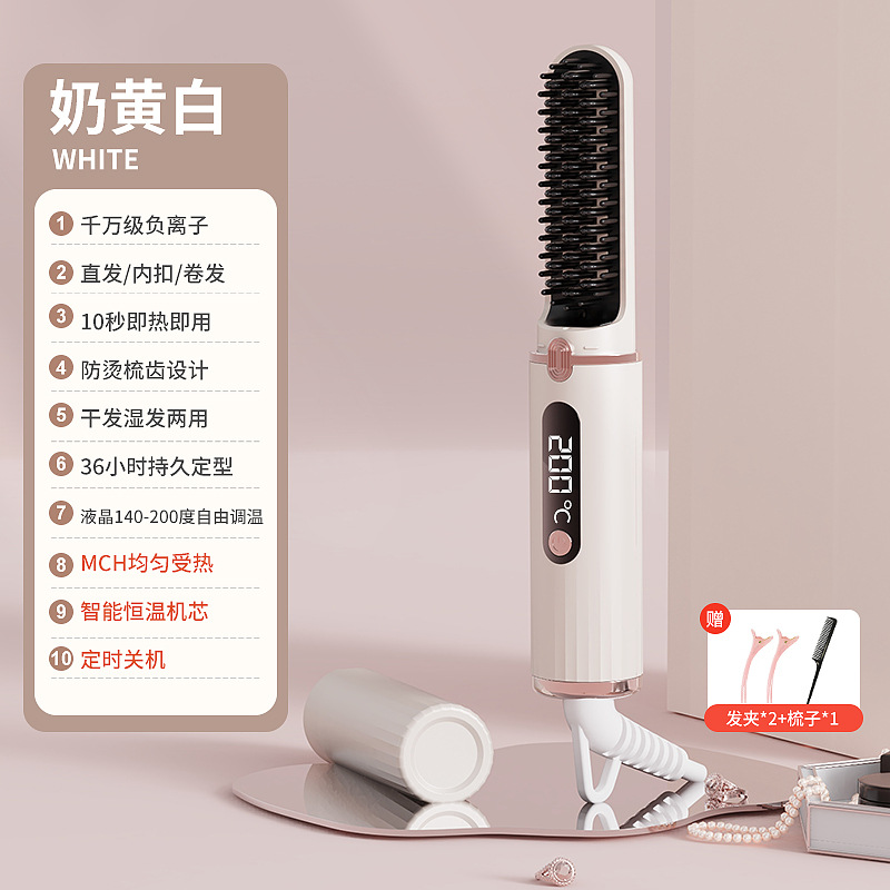 跨境新款有线直发梳便携迷你拉直板直发器负离子不伤发电梳子