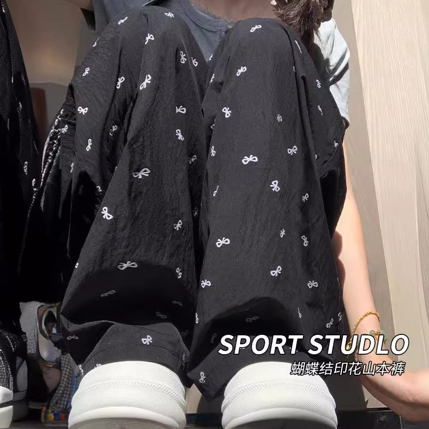 蝴蝶结印花山本裤女裤夏天女裤子垂感慵懒风休闲裤直筒女装阔腿裤