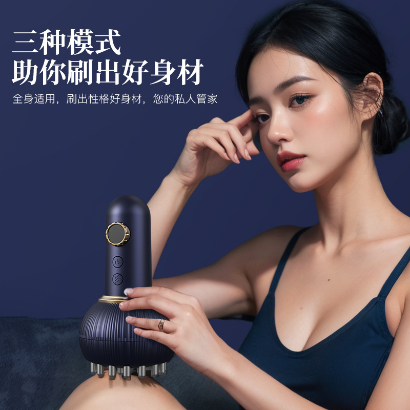 跨境迷你刮痧仪加热震动微电流经络刷家用拔罐器充电走罐器刮痧仪