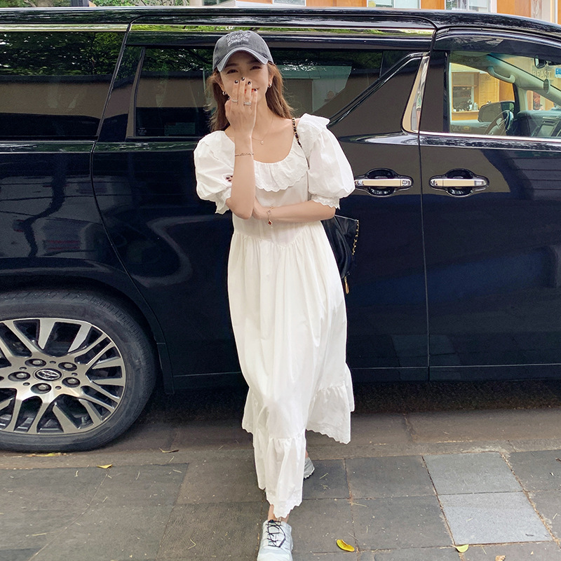 穿搭小个子白色荷叶领短袖连衣裙女夏季新款收腰显瘦裙子