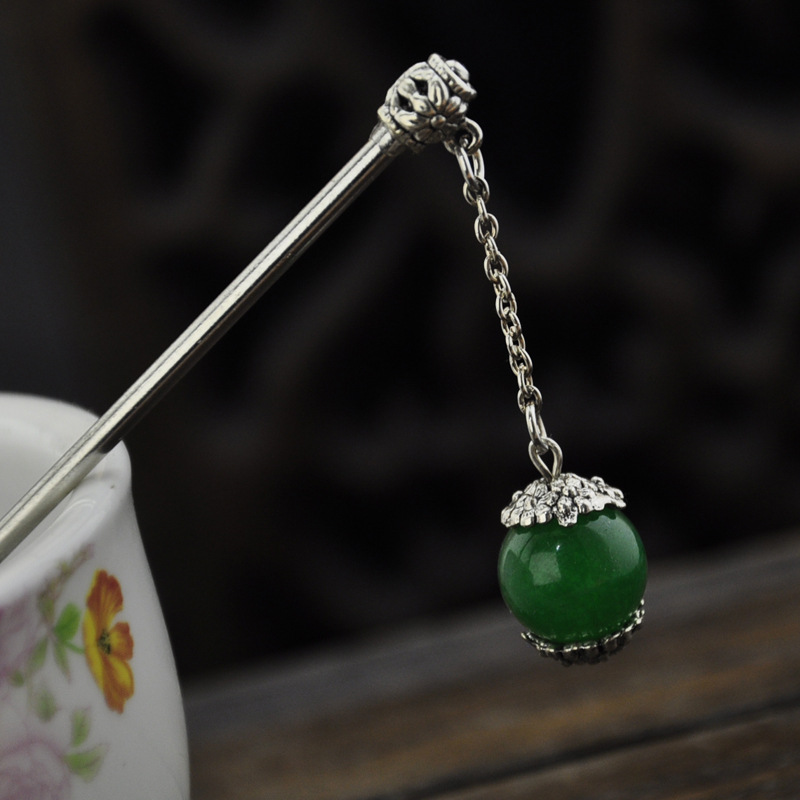 复古发饰绿玛古典发簪子步摇古代宫廷盘发民族女汉服流苏发簪