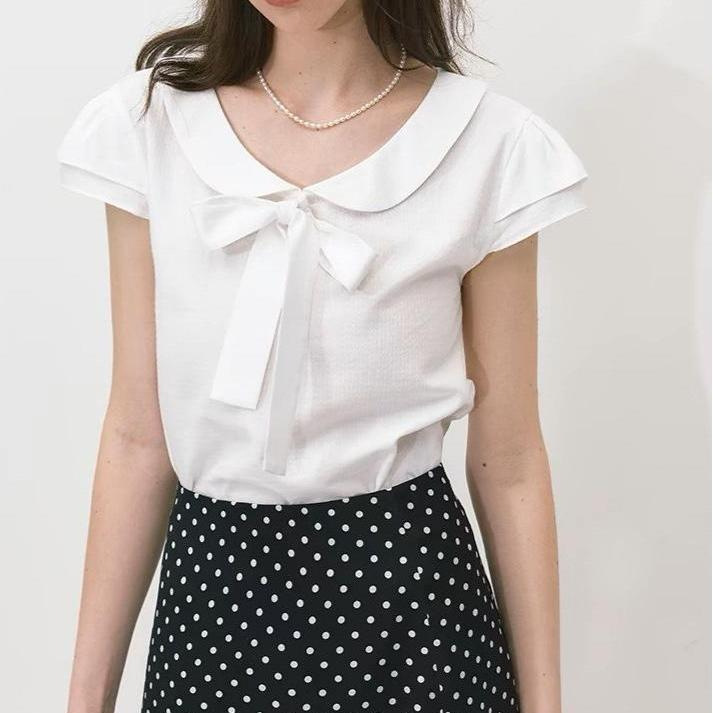 法式衬衫女25年夏季新款复古高级显瘦小翻领蝴蝶结短袖上衣