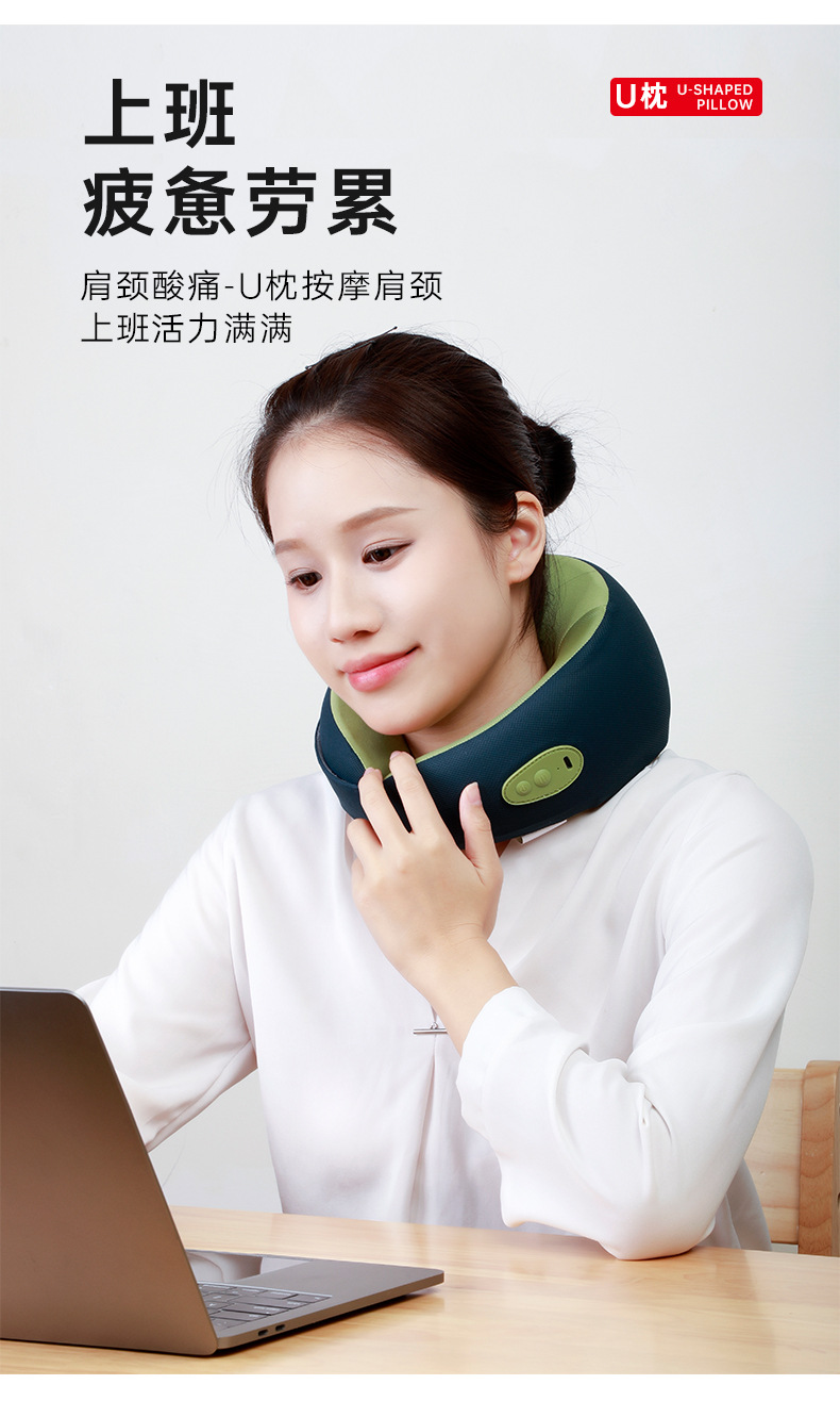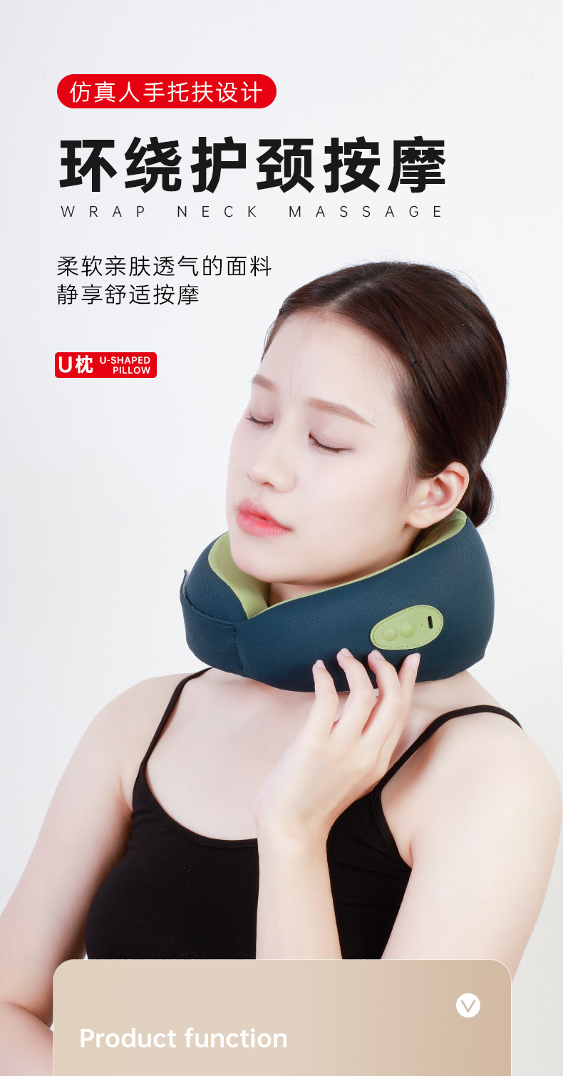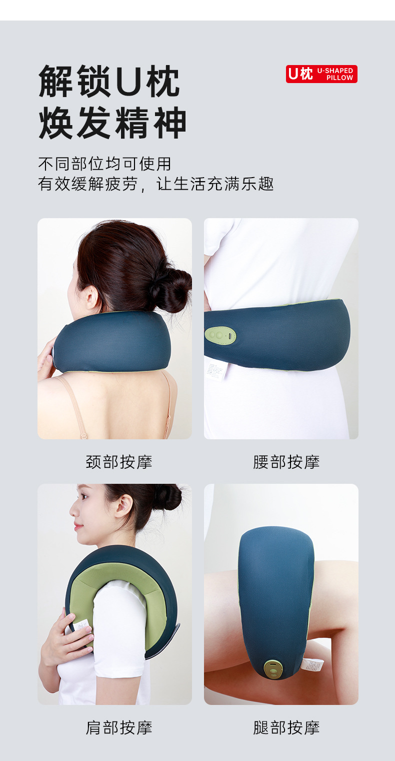 新款肩颈多功能U型按摩枕颈椎颈部按摩家用电动USB充电热敷跨境