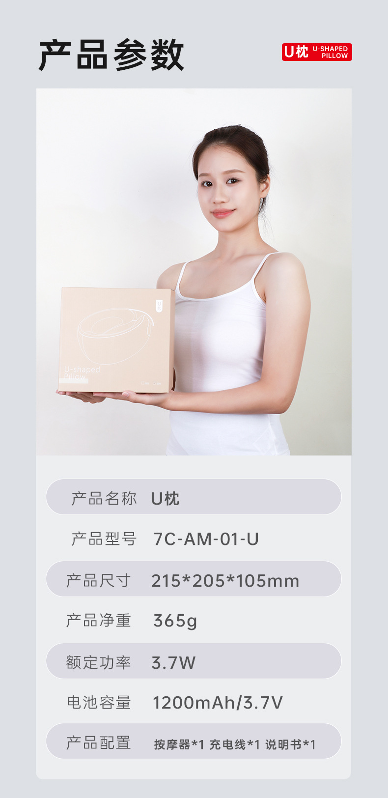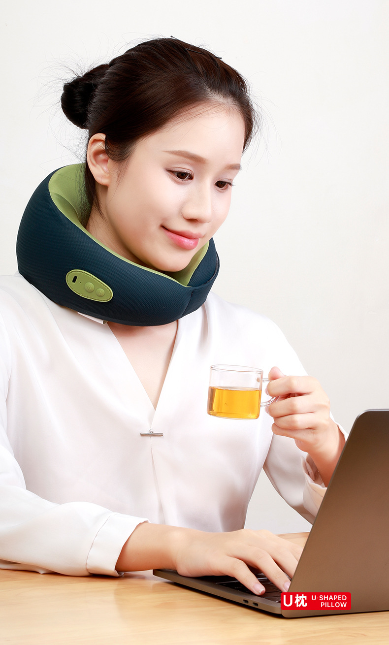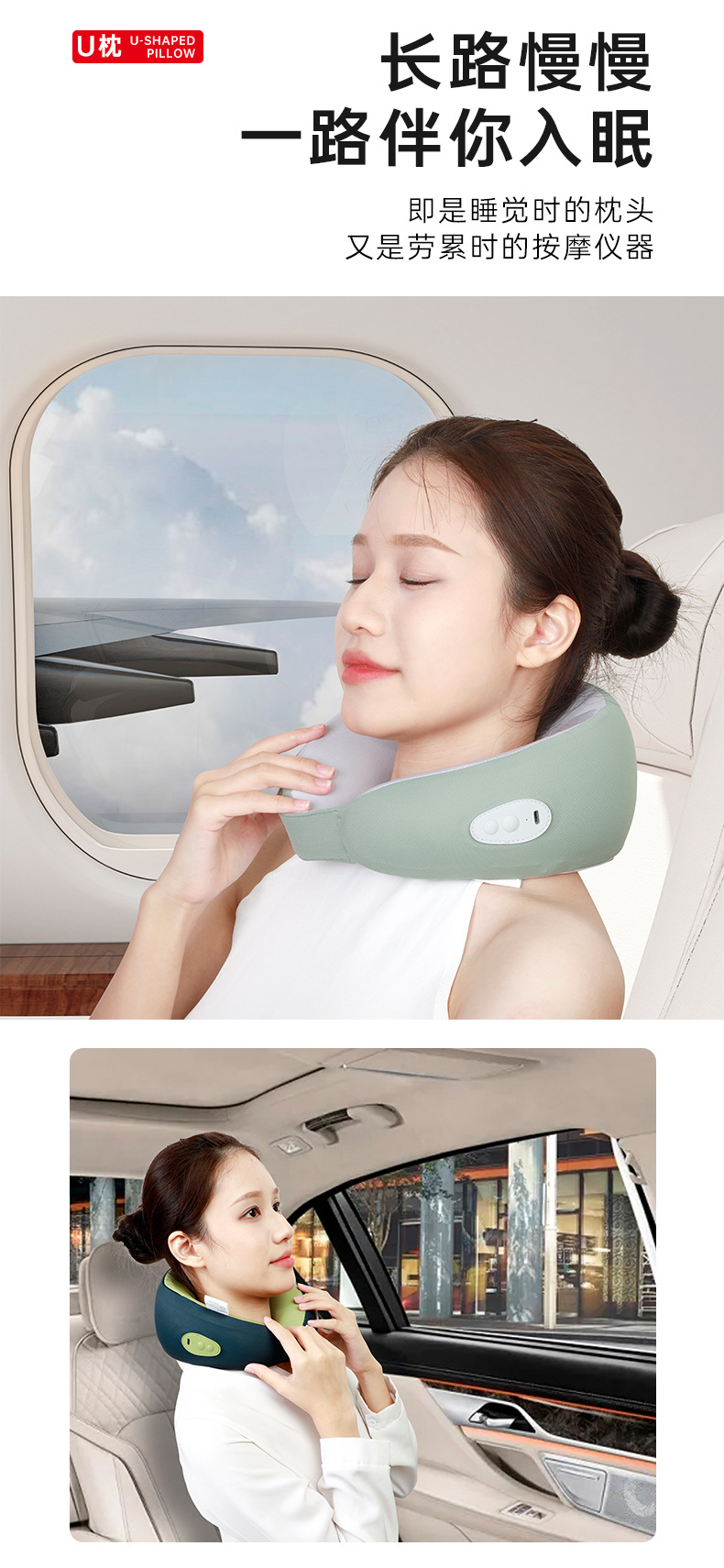 新款肩颈多功能U型按摩枕颈椎颈部按摩家用电动USB充电热敷跨境