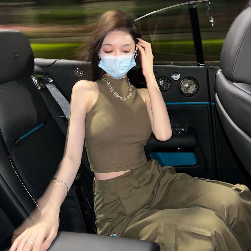 修身辣妹吊带背心女内搭夏季新款外穿打底半高领短款背心无袖上衣
