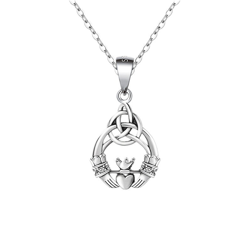925纯银项链心形手皇冠垂坠原创个性女士精致锁骨链低过敏纯银