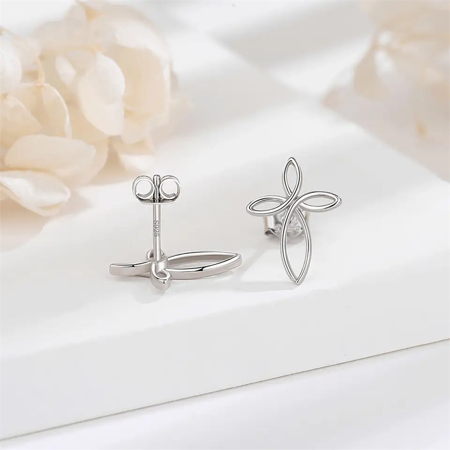 S925纯银耳钉 几何高级复古个性设计四叶草 防过敏纯银耳饰