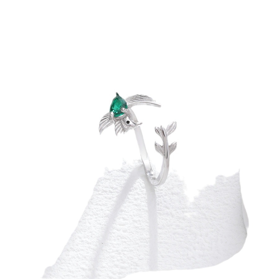 S925 纯银开口蜂鸟戒指母亲节礼物送低过敏女士925纯银活口戒指