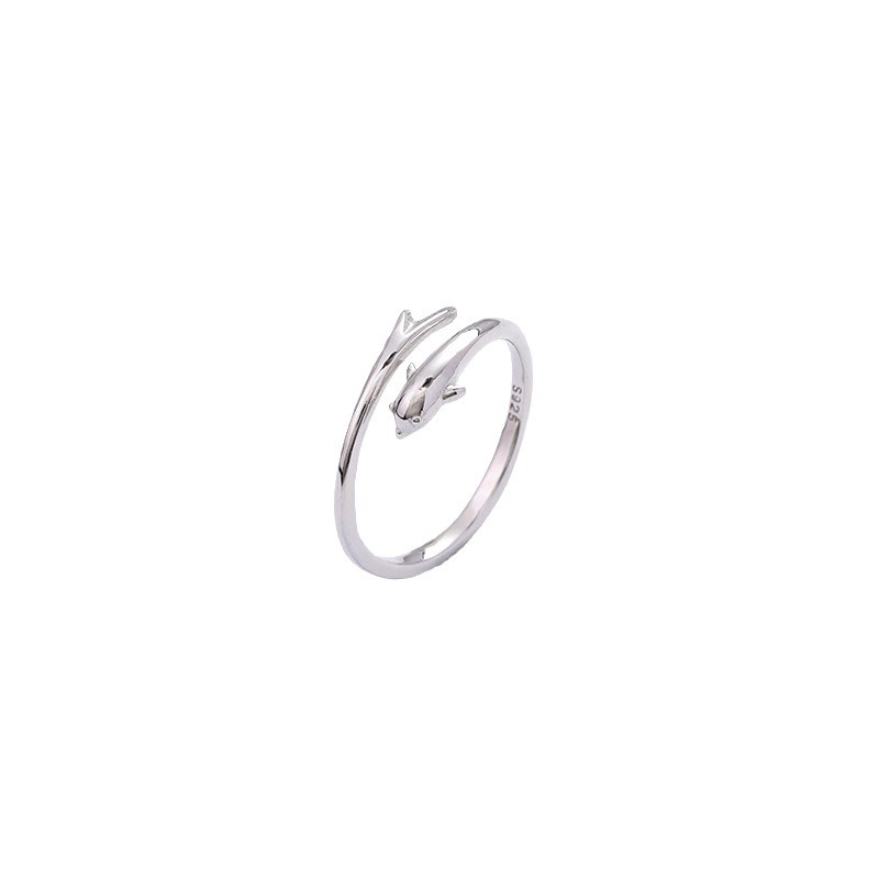 925纯银海豚戒指女新款个性设计 开口可调节指环简约纯银饰品